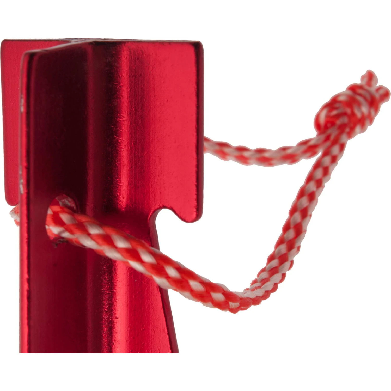 Standardhering für härtere Böden und etwas steinigeren Untergrund. In gut sichtbarer roter Ausführung aus Aluminium. T-Form mit Schlaufe zum einfachen Herausziehen des Herings. Zusätzlich hat der Hering auch noch Bohrungen zur Fixierung von Schnüren. Sehr gut verarbeitet. Professionelles Finish.
