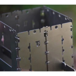 Der Bushbox XL in Titan-Ausführung von bushcraft essentials ist ein außerordentlich effizienter portabler Falt-Hobo-Kocher zum Grillen, Kochen, Wärmen. Zusammengefaltet nur ca. 1 cm dick. Perfekt für längere Outdoor-Trips, Camping, Trekking, Bushcraft, Biker, Expeditionen und und und… Unabhängig, vielfältig und einfach zu benutzen. Den Brennstoff gibt es kostenlos überall in der Natur – Zweige, Äste, Laub, Tierdung. Halteposition für Trangia Kocher. Zusammengeklappt ist dieser geniale Hobo-Ofen nur wenig dicker als 1 cm und lässt sich nahezu überall unterbringen. Der Bushbox XL Titanium wird an den Scharnieren einfach aufgeklappt und ist sofort einsatzbereit (er lässt sich auch mit Handschuhen oder klammen Händen problemlos aufbauen, was bereits auf Expeditionen unter Beweis gestellt wurde). Der Bushbox XL Titanium arbeitet nach dem Kamin-Prinzip: Luft strömt von unten in den Kocher, bringt sogar noch feuchtes Material zum Brennen und erzeugt starke Hitze, was weiter dadurch unterstützt wird, dass die Hitze im Gegensatz zu einer offenen Flamme kaum nach den Seiten abstrahlen kann und dadurch vorwiegend nach oben gelenkt wird. Der Bushbox XL Titanium ist ein Effizienzwunder. Schon mit wenigen kleinen Zweigen lässt sich Wasser in unter 4 Minuten zum Kochen bringen, Fleisch grillen, Essen zubereiten – und vieles mehr. Als Brennstoff kann neben praktisch jedem natürlichen bzw. festen Brennstoff wie Holz, Rinde, Holzkohle (sogar trockner Tierdung) auch ein Spiritusbrenner, Esbit-Tabletten oder ein Gel-Kocher verwendet werden. Durch zwei mitgelieferte Stäbe (aus Edelstahl) kann eine externe Wärmequelle (z.B. Trangia) auf jeder beliebigen Höhe in der Bushbox XL plaziert werden. Diese Stäbe lassen sich auch auf der Oberseite des Kochers einlegen, so dass auch kleine Gefäße erhitzt werden können. Die mitgelieferten, äußerst variabel einsetzbaren Topfauflagen können alternativ verwendet werden als Höhenregulierung beim Einsatz anderer Wärmequellen, Haltestäbe zum Transport oder Versetzen des heißen Kochers und Halterung für den Trangia-Brenner.