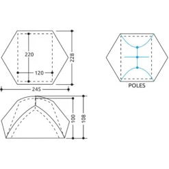 Merkmale: kompaktes und leichtes Zwei-Personen-Zelt mit Doppelwand; selbstragende Struktur mit integriertem Gestänge, ausgestattet mit Schnellclipsystem für eine einfache und schnelle Montage; zwei breite Eingänge mit geräumigem Vorraum auf beiden Seiten für mehr Schutz; Netzwand Innen für maximale Belüftung; zwei Innentaschen zur Aufbewahrung von Gegenständen; leichte, strapazierfährige und wasserdichte Außenwand mit verdeckten Reißverschlüssen, zwei großzügigen Belüftungsöffnungen; faltbare Bodenklappen an allen Seiten der Außenwand; die Außenwand wird mit einstellbaren Riemen mit Metallösen und Velcro®-Klettband am Gestände befestigt; Außenwand mit Zeltspannleinen, die für eine einfache und sichere Spannung sorgen; Befestigungssystem des Zeltbodens mit einstellbarer Schnur für eine einfache Positionierung des Zelts auch auf unebenen Flächen; 15 cm V-Profil Aluminiumheringe; inkl. Packbeutel, Heringe und Spannleinen