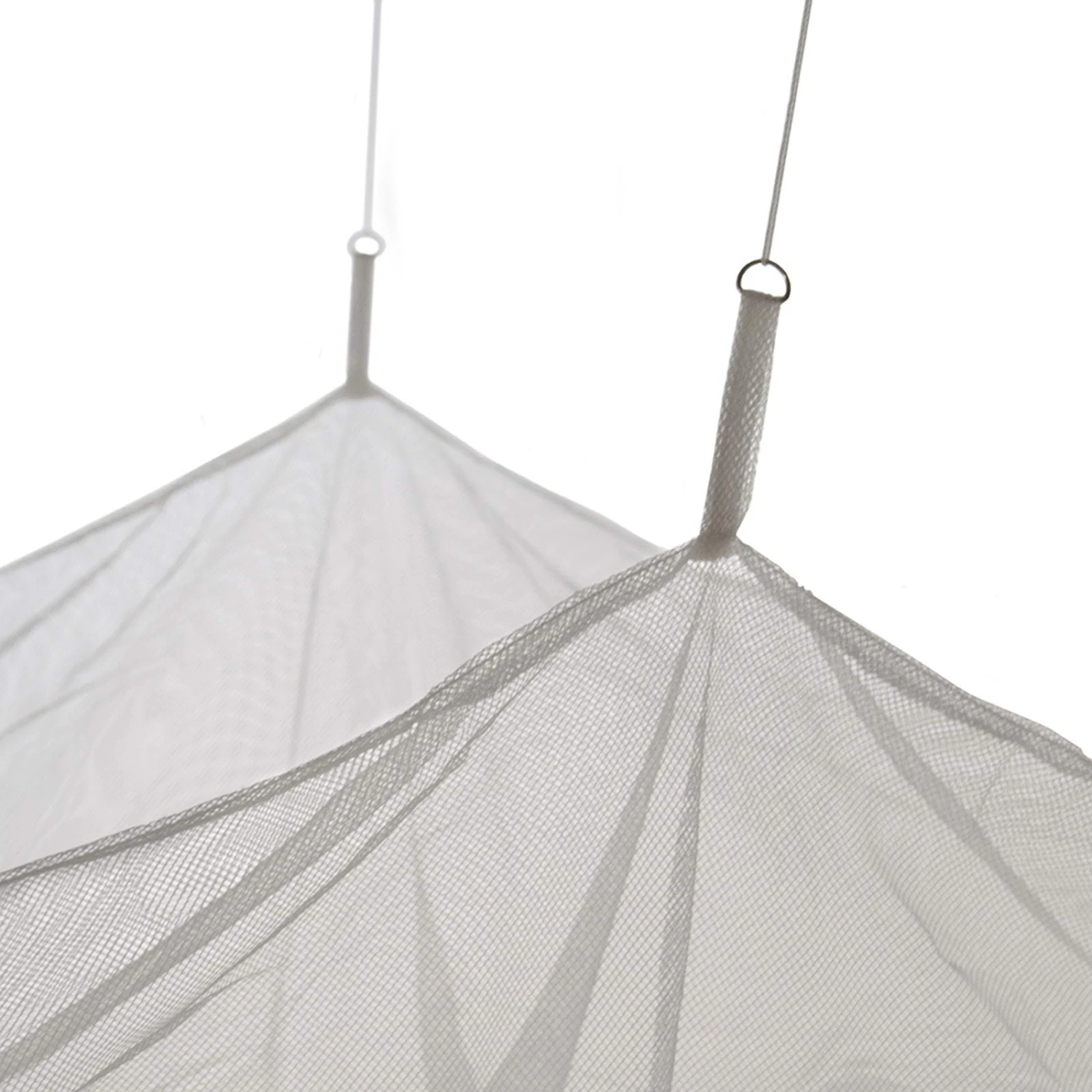 Das Care Plus Mosquito Net Solo Box Impregnated ist ideal für den Hausgebrauch (auch in tropischen Regionen). Dieses imprägnierte Netz ist für 1 Person geeignet, kastenförmig und mit vier Aufhängepunkten versehen. Das Modell Solo Box ist vielseitig und kann als Kasten-, Keil- und Zeltmodell verwendet werden. Mit dem Aufhängeset, das im Lieferumfang enthalten ist und aus Seil, Aufhängehaken, Nägeln und Sicherheitsnadeln besteht, lässt sich jedes Moskitonetz leicht aufhängen. Bringen Sie über Ihrem Bett eine Befestigung für das Netz an oder spannen Sie horizontal über Ihrem Bett eine Schnur, an der das Moskitonetz befestigt werden kann. Das Moskitonetz hat keinen seitlichen Eingang, man hebt es kurz an um unter das Netz zu kommen. Ein zusätzlicher Eingang birgt die Gefahr, dass man diesen aus Versehen nicht schließt und somit Mücken und andere Flugwesen in das Netz gelangen können.