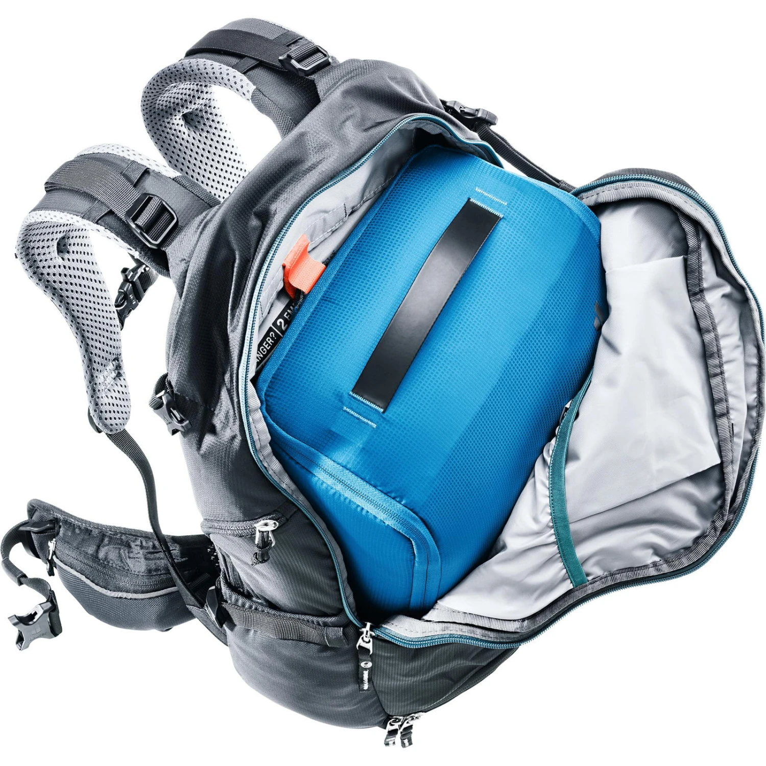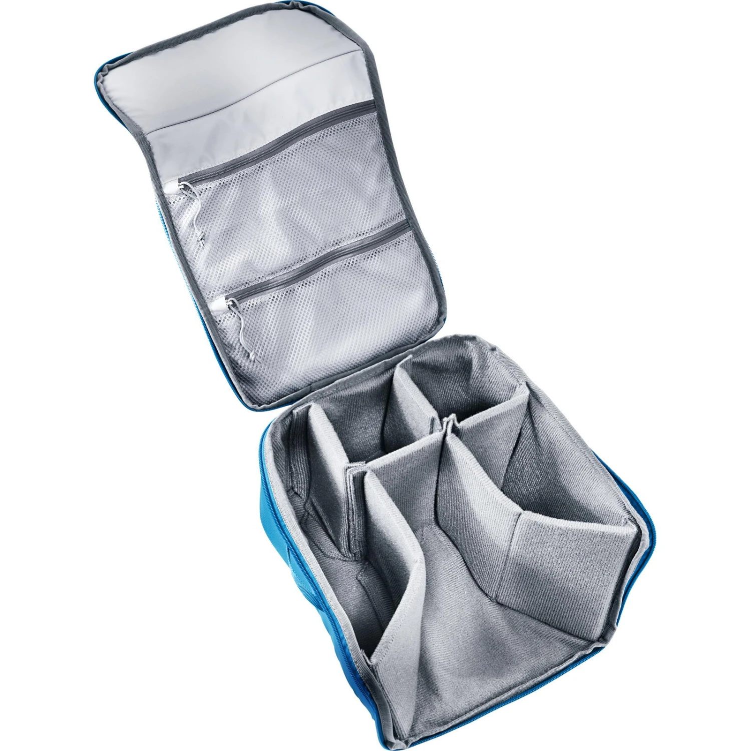 Die Camera Box One von deuter ist eine gepolsterte Kameratasche für den sicheren Transport der Fotoausrüstung. Die Tasche schützt Kameras und Zubehör vor Kratzern, Stößen und Staub und kann sowohl separat als auch in den Rucksack integriert verwendet werden. Die Camera Box One verfügt über eine variable Innenaufteilung mit unterschiedlichen gepolsterten Klett-Trennwänden und lässt sich über einen Rundbogen-Reißverschluss komplett aufklappen. Sie bietet Platz für eine DSLR mit aufgesetztem Objektiv und bis zu drei weiteren Objektiven oder Zubehör. Die Camera Box One passt in alle deuter Rundbogen-Reißverschluss-Rucksäcke ab 30 Liter.