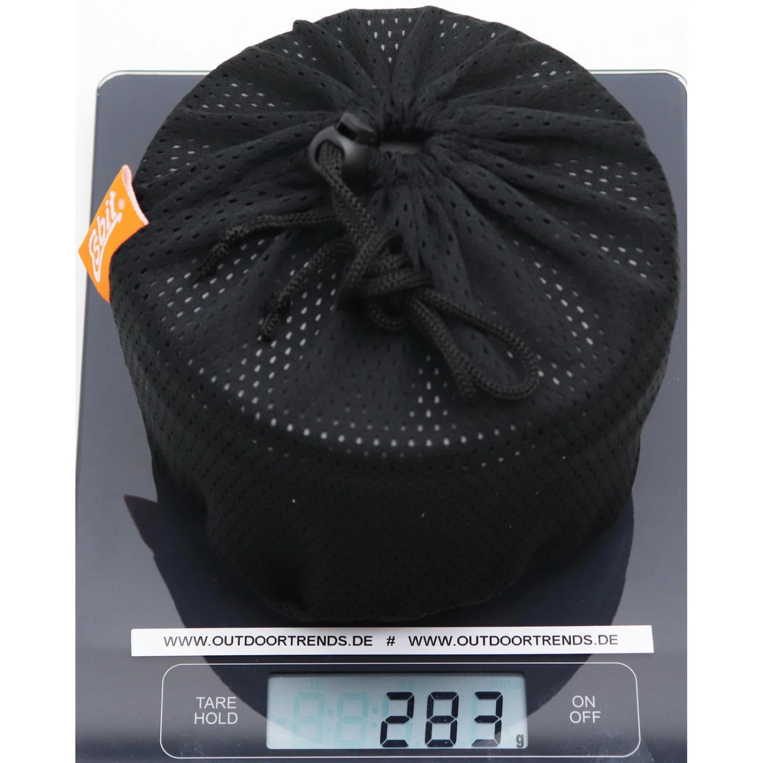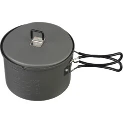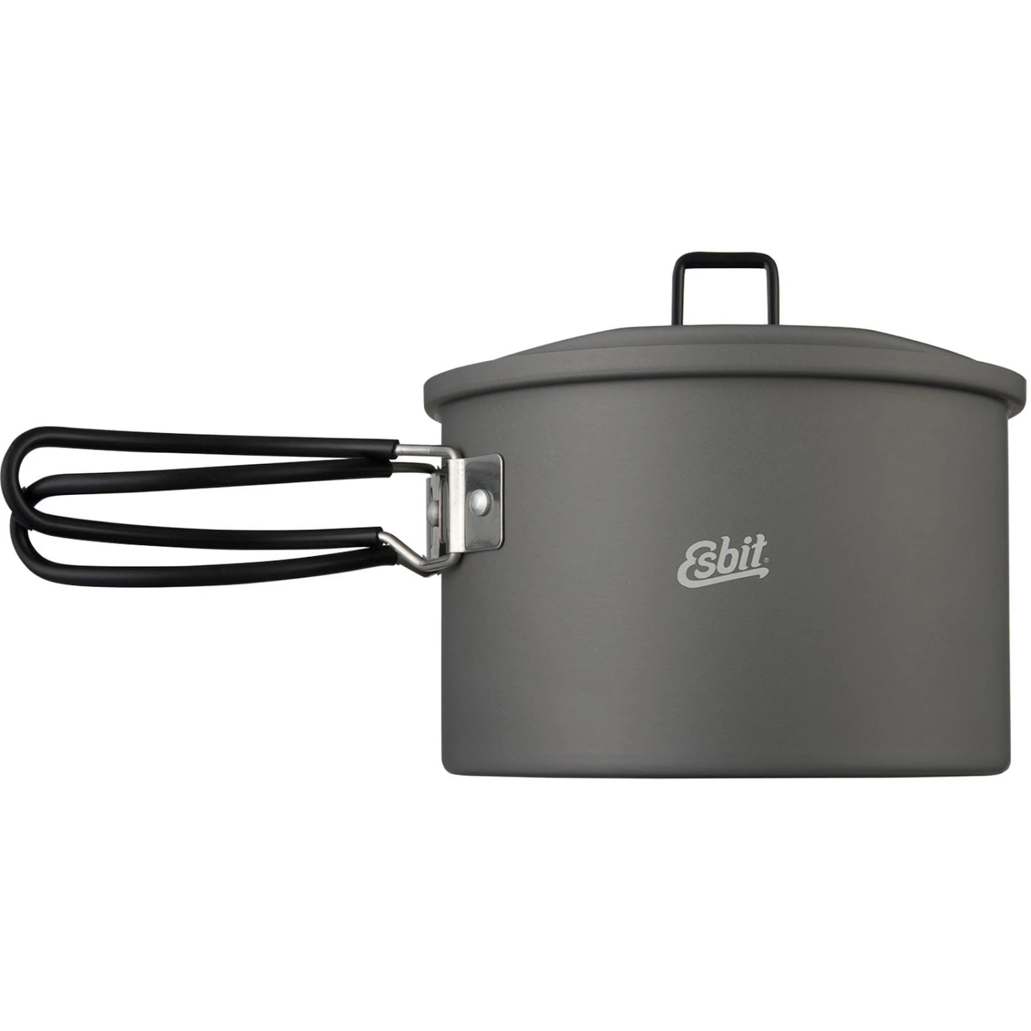 Der Aluminium Topf PT1600HA von Esbit ist aus extrem leichtem, hartanodisiertem Aluminium und fasst ca. 1.600 ml. Der Topf hat zwei klappbare und platzsparende Griffe aus 18/8 Edelstahl mit Silikonummantelung für Sicherheit und Komfort beim Kochen. Der Deckel lässt sich praktischerweise beim Kochen direkt am Rand des Topfes aufhängen. Das Volumen wird im Inneren des Topfes in ml und oz angegeben. Der Aluminium-Topf bietet im Inneren zusätzlichen Platz zur Aufbewahrung z.B. von verpackten Mahlzeiten. Zum Lieferumfang gehört außerdem ein praktischer Netzbeutel.