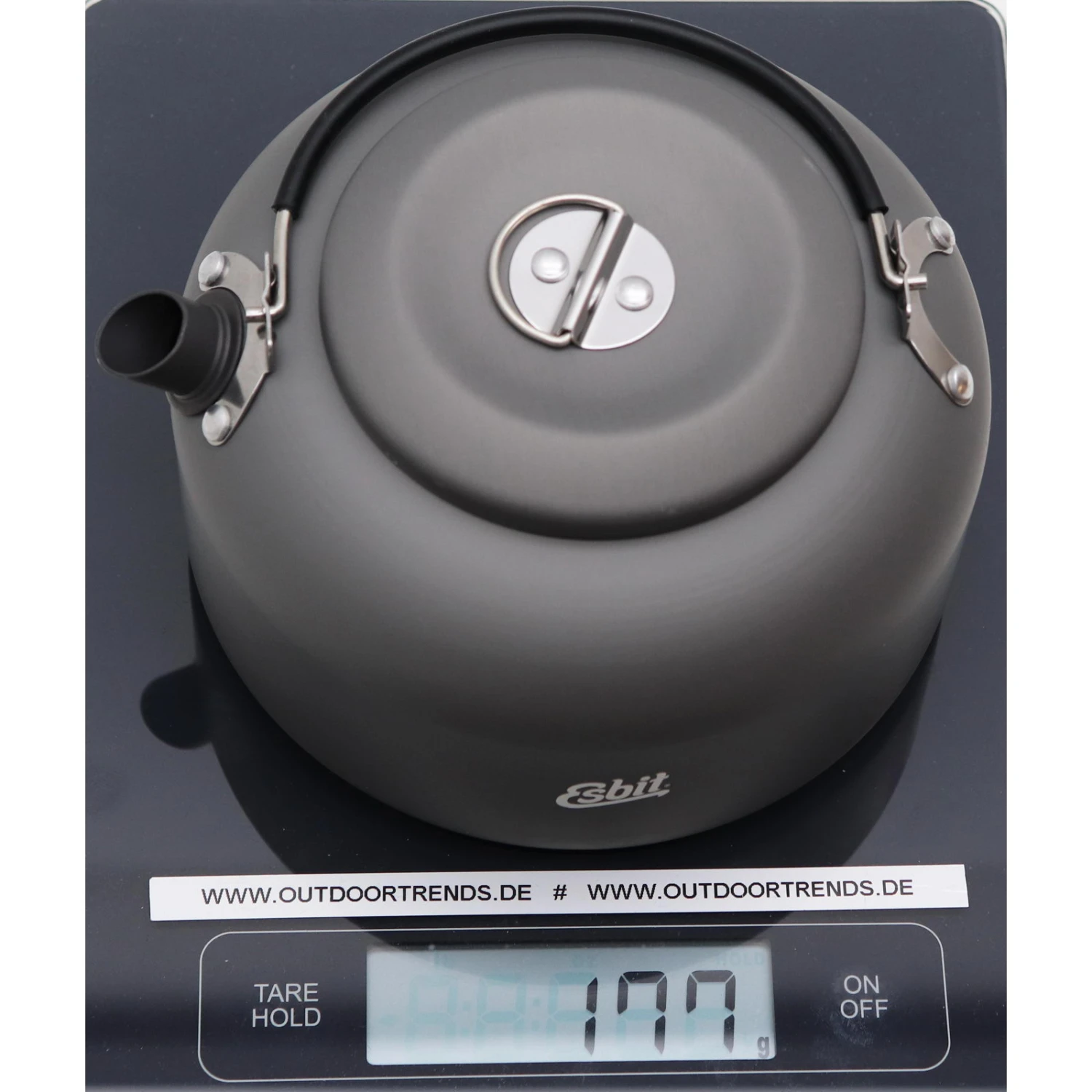 Wasser kochen – ein Grundbedürfnis im Outdoorbereich. Ideal ist hier dieser Wasserkessel von Esbit aus extrem leichtem, hart anodisiertem Aluminium und das neue größere Modell des Esbit Wasserkessels WK600HA. Dank seines großen Volumens mit ca. 1,4 Liter ist dieser Wasserkessel ideal für alle, die nicht alleine unterwegs sind oder einfach einen höheren Wasserbedarf haben. Die klappbaren Haltegriffe am Kessel und Deckel sorgen für ein gutes Gießverhalten und eine sichere Handhabung.