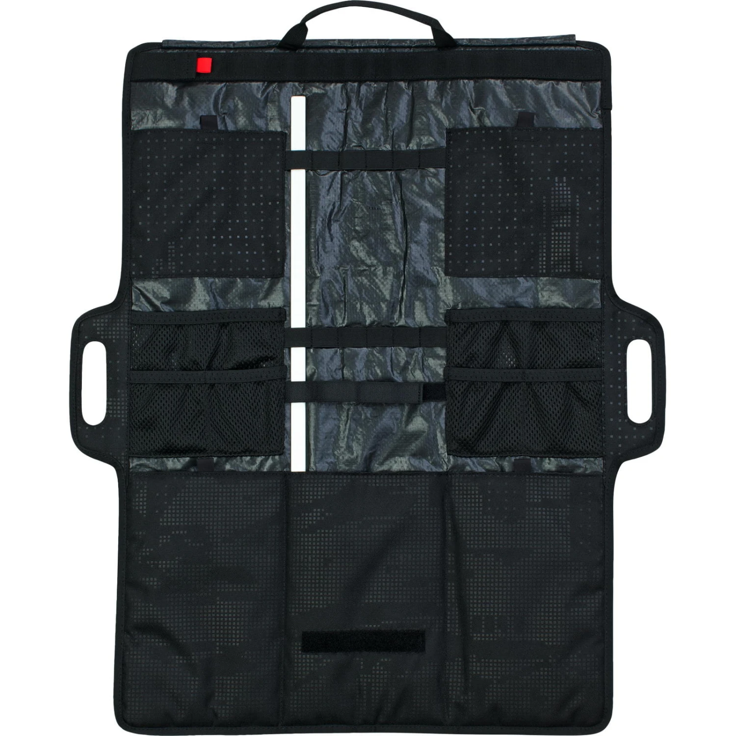 Die Gear Wrap L von Evoc ist eine große, praktische Packtasche mit breitem Tragegriff und Organizer innen für den sicheren Transport von E-Bike-Zubehör. Die Ausrüstungstasche hat mehrere Fächer und Schlaufen für die übersichtliche und organisierte Aufbewahrung von E-Bike-Akku, -Display, -Netzteil, Werkzeug und mehr. Die Gear Wrap M lässt sich aufhängen oder aufspannen und kann als vertikaler Tool Organizer genutzt werden, damit der Inhalt schnell und übersichtlich zur Hand ist. Ein mitgelieferter Glasfaserstab dient zur Verstärkung der Organizer Funktion. Das Innenmaterial ist aus wasserdichtem und leicht zu reinigendem Zeltmaterial. Die Packtasche lässt sich kompakt zusammenrollen und mit Klettverschlussbändern verschließen oder zusätzlich komprimieren.