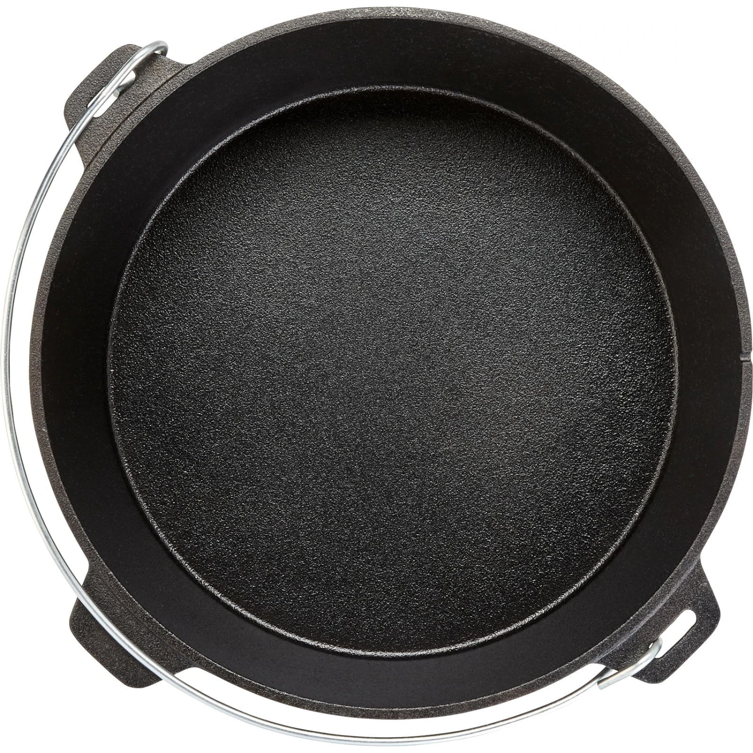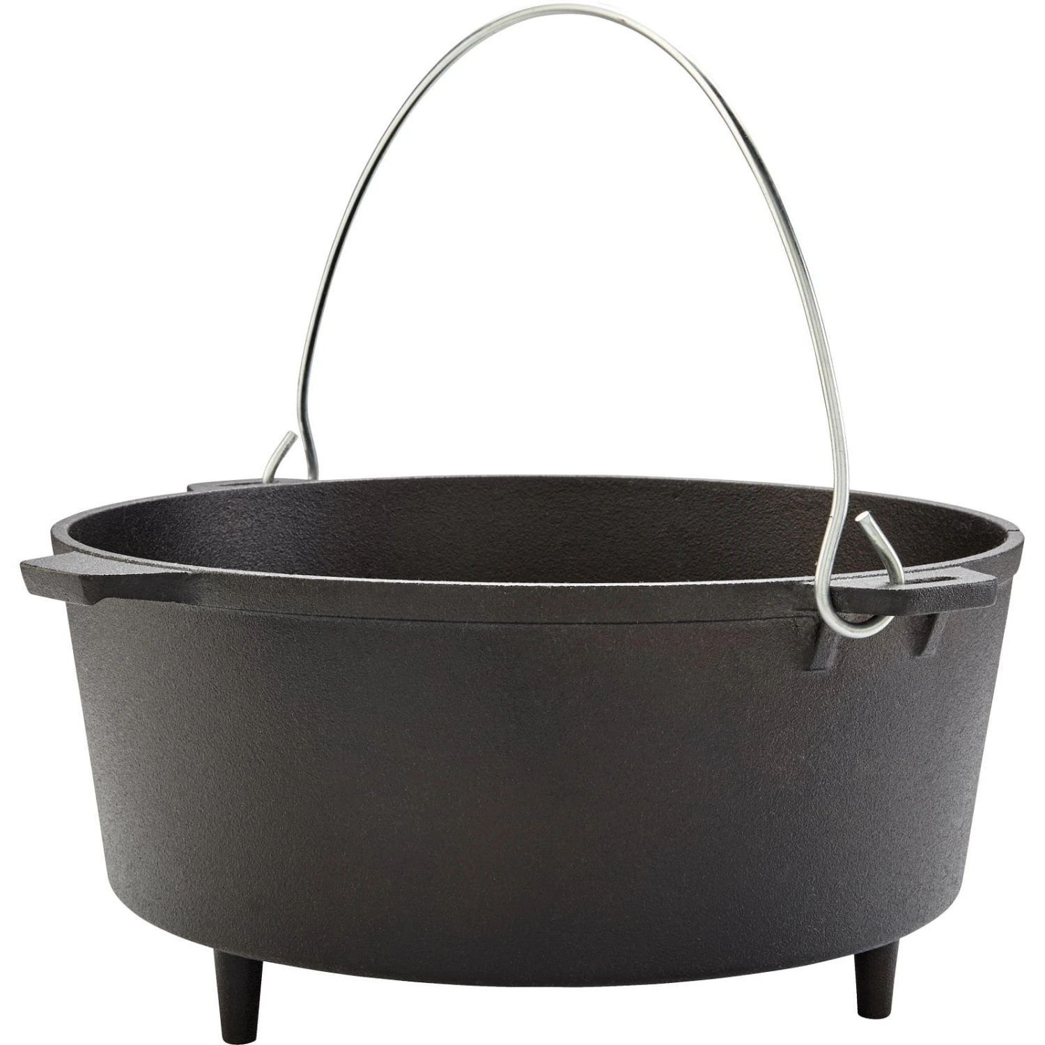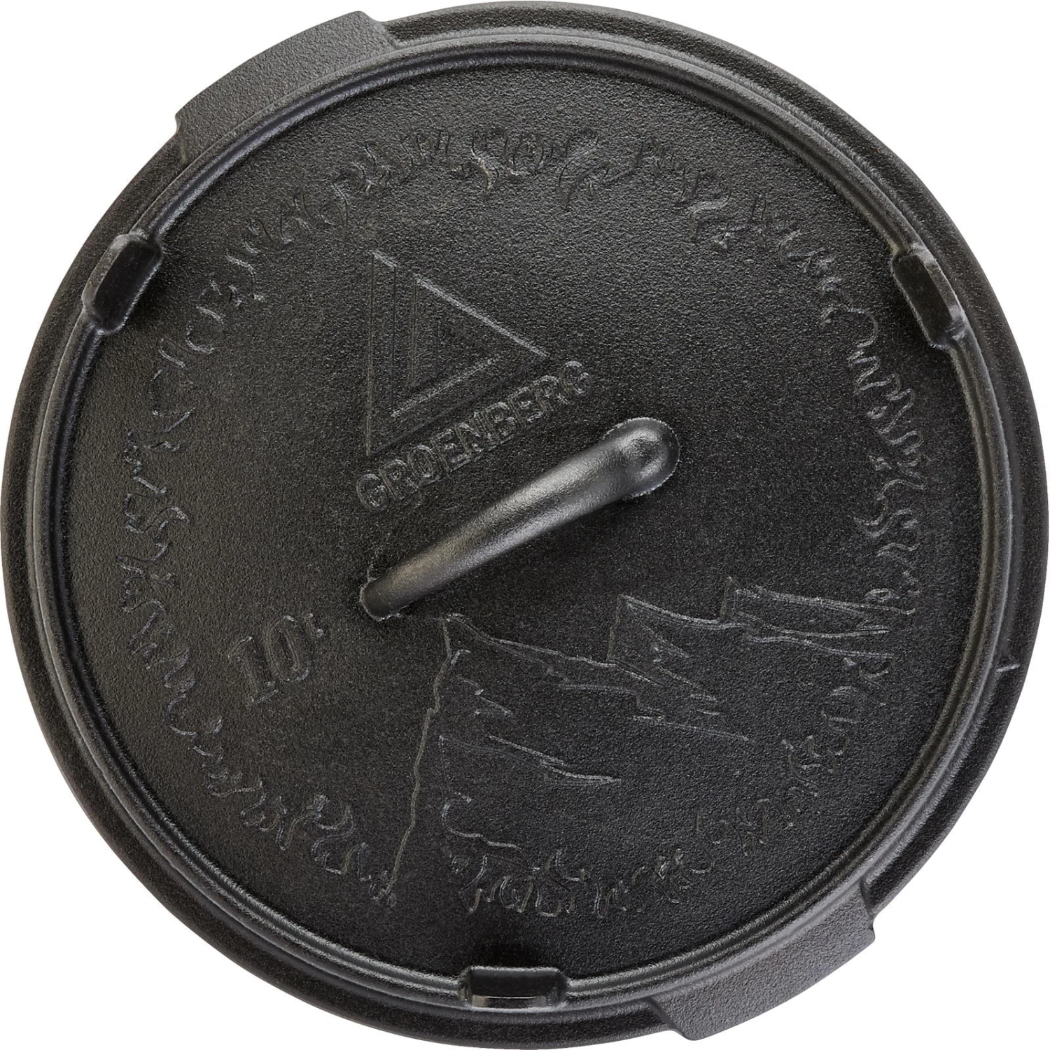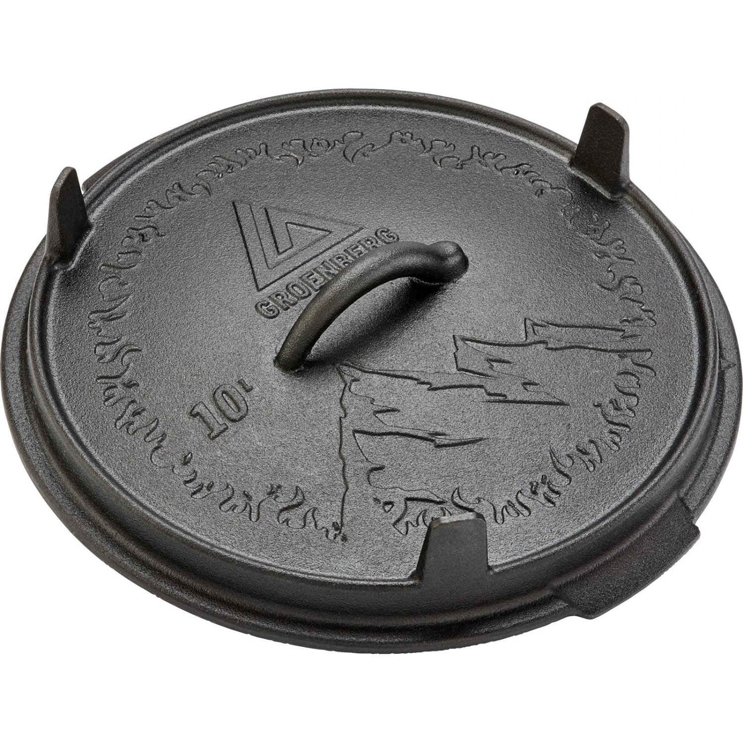 Der ASKJA POT 10L von Groenberg ist ein gusseiserner Topf mit hoher Wärmeleitfähigkeit und konstanter Rundumwärme. So werden Eintöpfe, Suppen, Gemüse, Fleisch oder Brot schonend zum Genuss. Der Deckel ist leicht konkav gewölbt damit das Kondenswasser im Inneren zum Rand hin abfließen kann und beim Anheben des Deckels nichts ins Gericht tropft. Ein Dampfauslass am Deckel verhindert lästiges Klappern oder Überkochen. Besonders Praktisch: Der Deckel lässt sich auch als Pfanne oder Servierteller nutzen und steht, dank seiner Füße auf der Oberseite, leicht erhöht und absolut sicher. Geeignet für Grill, Gasherd, Backofen oder offenes Feuer. Der Topf ist noch nicht eingebrannt und muss vor der ersten Benutzung entsprechend vorgenommen werden.
