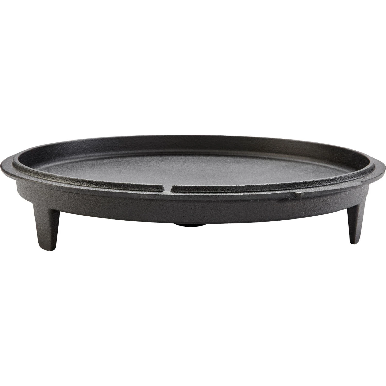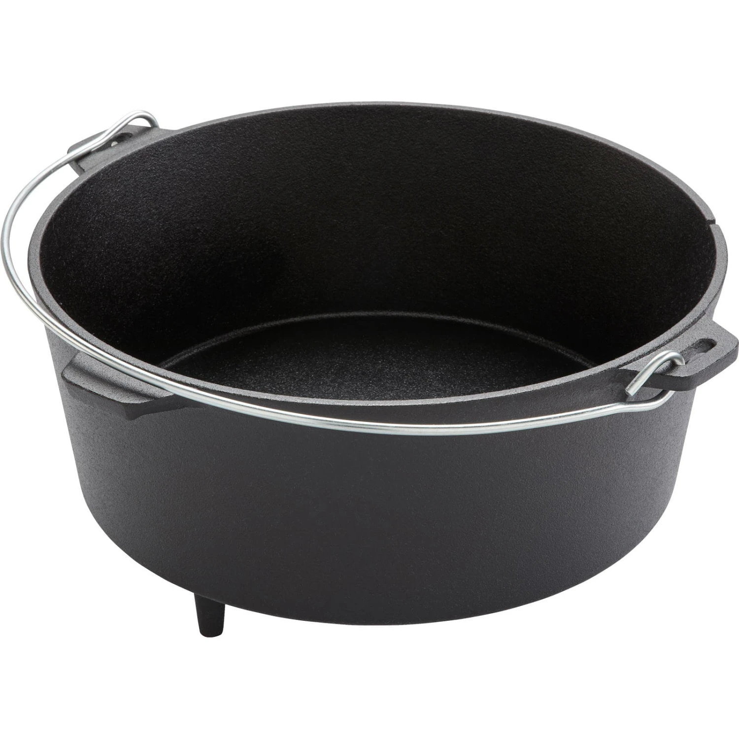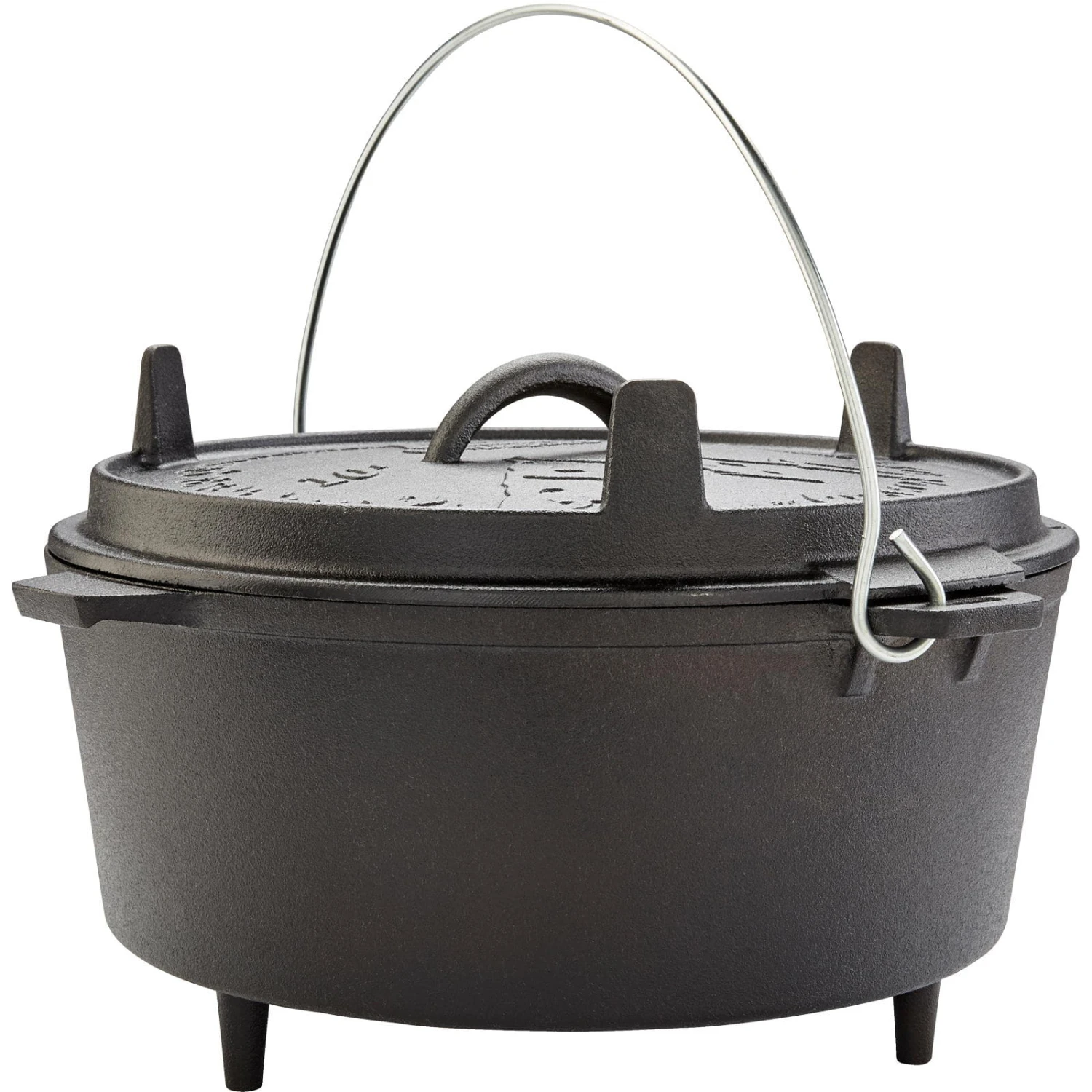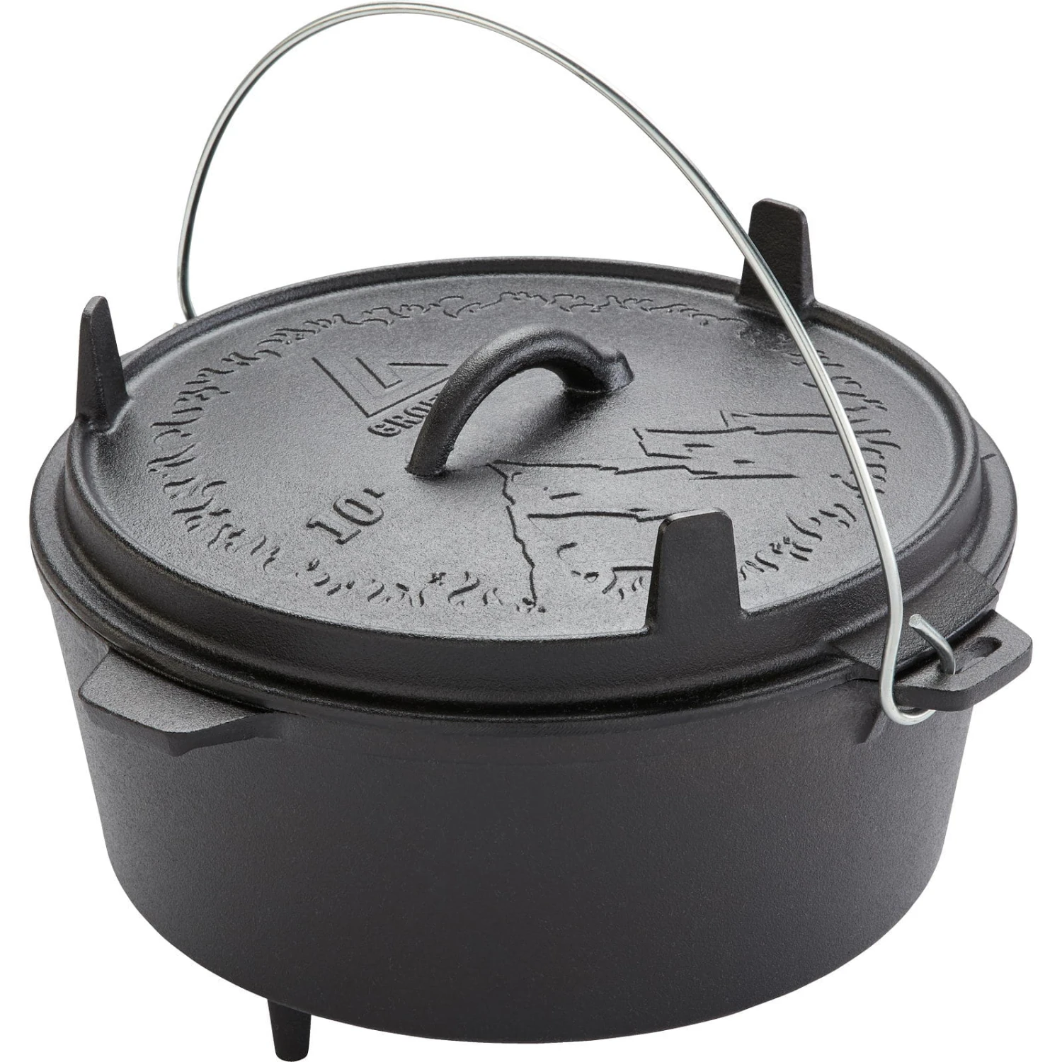 Der ASKJA POT 10L von Groenberg ist ein gusseiserner Topf mit hoher Wärmeleitfähigkeit und konstanter Rundumwärme. So werden Eintöpfe, Suppen, Gemüse, Fleisch oder Brot schonend zum Genuss. Der Deckel ist leicht konkav gewölbt damit das Kondenswasser im Inneren zum Rand hin abfließen kann und beim Anheben des Deckels nichts ins Gericht tropft. Ein Dampfauslass am Deckel verhindert lästiges Klappern oder Überkochen. Besonders Praktisch: Der Deckel lässt sich auch als Pfanne oder Servierteller nutzen und steht, dank seiner Füße auf der Oberseite, leicht erhöht und absolut sicher. Geeignet für Grill, Gasherd, Backofen oder offenes Feuer. Der Topf ist noch nicht eingebrannt und muss vor der ersten Benutzung entsprechend vorgenommen werden.