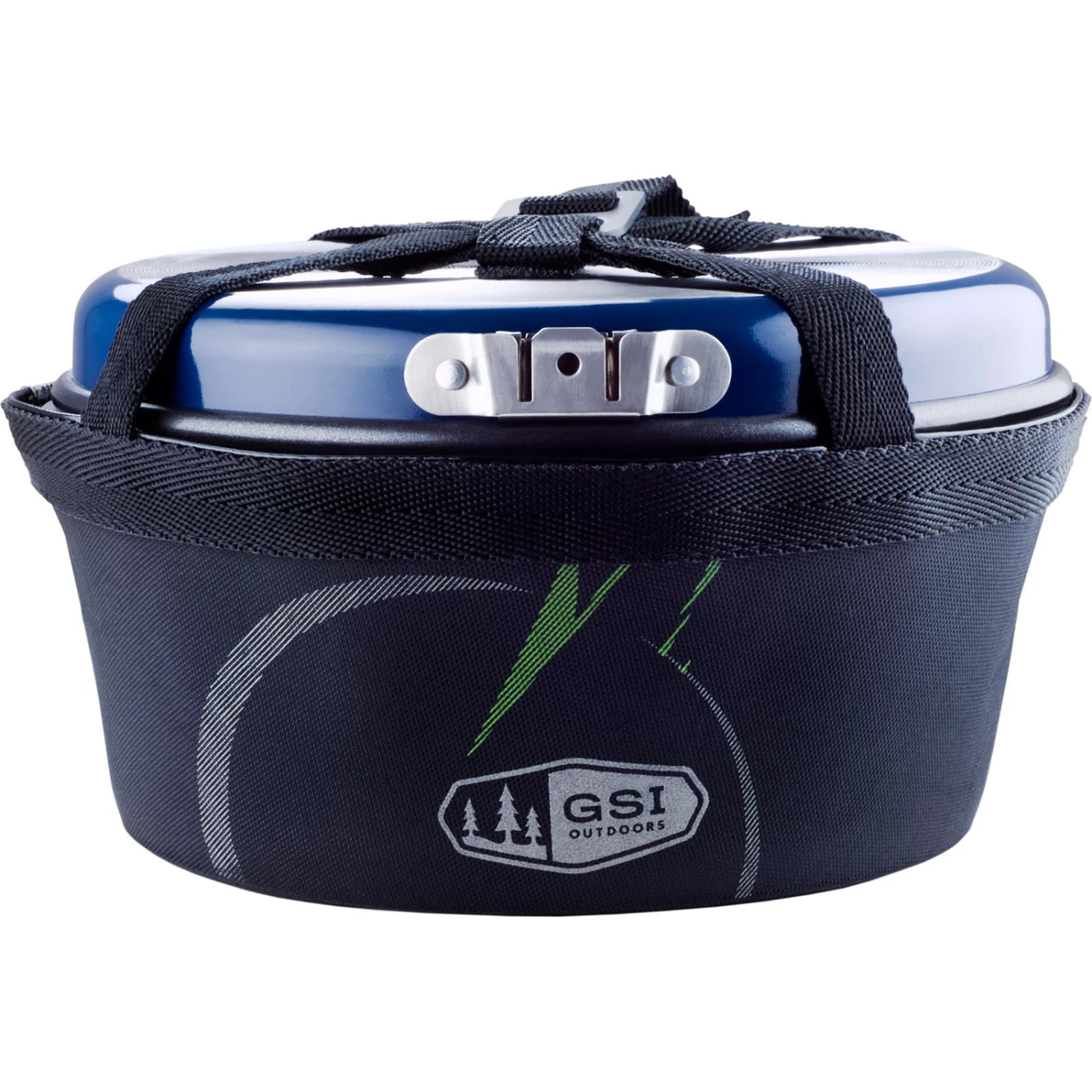 Das Bugaboo Backpacker Kochset von GSI enthält alles, was zwei Personen für die Mahlzeiten im Gelände brauchen, einschließlich der Spülmöglichkeit. Dieses robuste, klein verpackbare und umfangreiche Antihaft-Kochset erhitzt gleichmäßig, lässt sich leicht abwaschen und passt perfekt in die Tasche, die sich in eine Spüle verwandelt. Für nur 870 g erhält man einen 2-Liter-Topf, eine 8-Zoll-Bratpfanne, einen Siebdeckel, zwei große Becher mit Isolierhüllen und Sip-Through-Deckel, zwei Schüsseln, den faltbaren Topfgreifer und die geschweißte Spültasche.