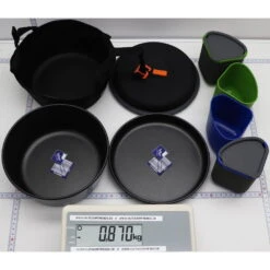 | Merkmale | BPA-freie Becher mit Isolierhüllen und Trinkaufsätzen, das gesamte Set lässt sich kompakt zusammenpacken und leicht transportieren, der bruchsichere Siebdeckel hält die Hitze zurück und erleichtert das Abgießen, der faltbare Topfgreifer sorgt für einen sicheren Halt und lässt sich für den Transport klein zusammenpacken, die BPA-freie Schalen sind leicht, hitzebeständig, passen in die Becher und sind leicht zu reinigen, die spiralförmig gedrehten Böden der Töpfe und Pfannen bieten sicheren Halt auf Herden und Grills, Hochtemperatur-Aluminium, PFOA-freie Teflon®-Antihaftbeschichtung, robuster Packsack mit geschweißten Nähten, auch als Campingspüle verwendbar |