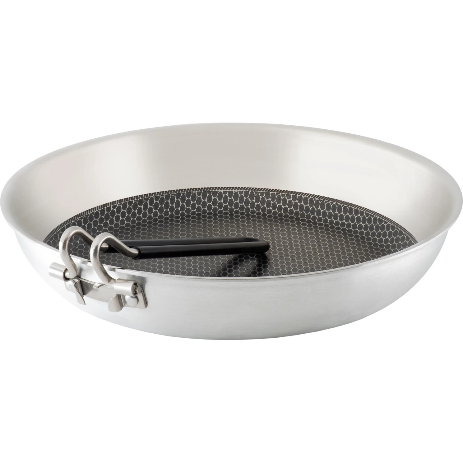 Die Gourmet 10″ Frypan von GSI ist eine robuste Camping-Pfanne, sie verfügt über ein erhöhtes, lasergraviertes Edelstahlgitter, das die antihaftbeschichtete Oberfläche vor Beschädigungen durch Kochutensilien schützt, zusätzlich lösen sich Speisen dadurch leicht ab und die Bratpfanne ist einfach zu reinigen. Die Gourmet 10″ Frypan verfügt über den SureLock-Klappgriff von GSI, der einen stabilen und festen Halt auf dem Herd oder Grill bietet und sich zur Aufbewahrung und zum Transport bequem in die Pfanne einklappen lässt. Der schwere, plattierte Aluminiumkern sorgt dafür, dass die Gourmet 10″ Frypan leicht ist und sich schnell über jeder Wärmequelle erhitzen lässt, genau wie die besten Gourmetpfannen. Zusammen mit dem Außenmaterial aus rostfreiem Stahl bietet die Gourmet 10″ Frypan eine unübertroffenen Haltbarkeit.