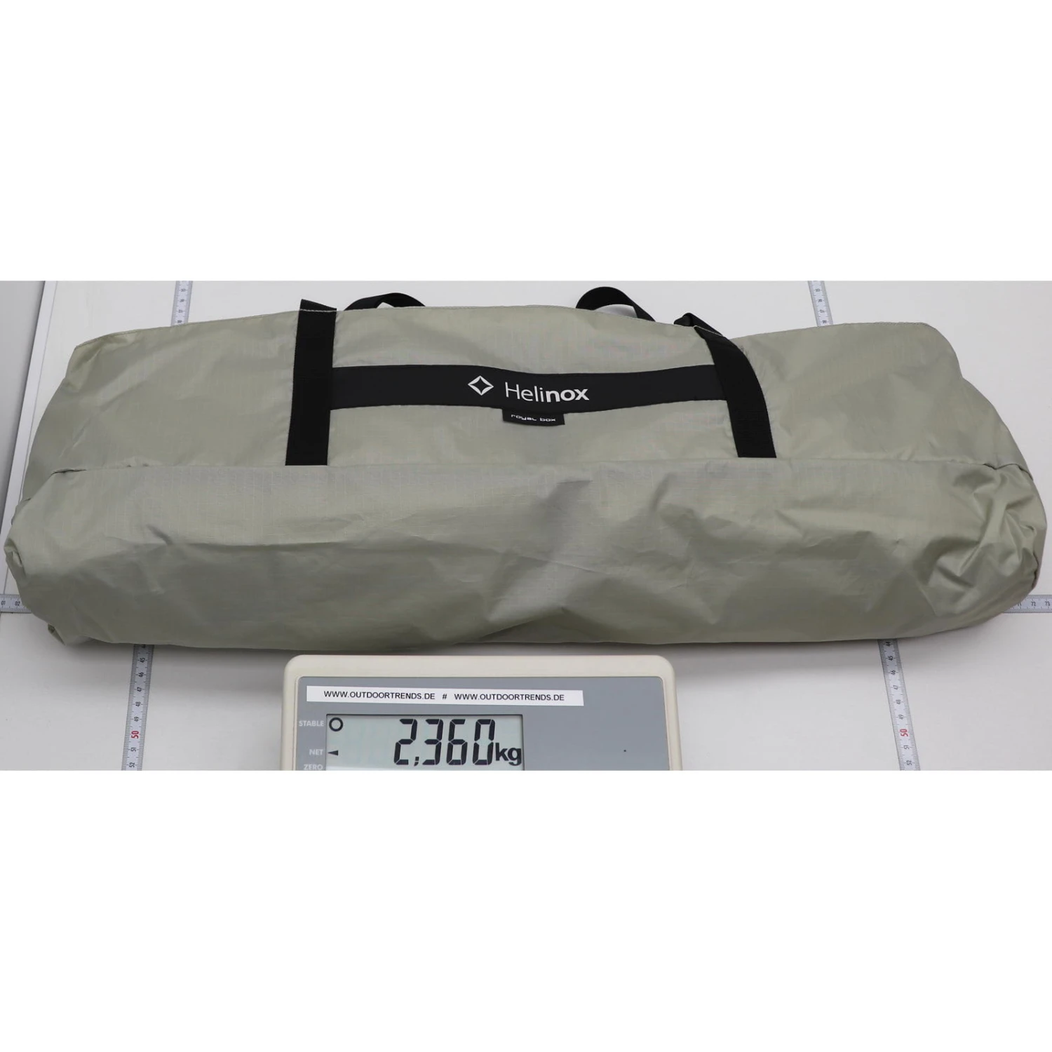 Das Royal Box Shade von Helinox schafft schnell ein schattiges Plätzchen auf dem Campingplatz, am Strand, im Park oder im Garten. Es bietet Platz für zwei Stühle und einen Tisch von Helinox. Das Gestänge stammt, wie bei Helinox üblich, von DAC und ist neben seiner Robustheit dank der verwindungssteifen Konstruktion auch für windige Tage geeignet. Das Helinox Royal Box Shade schützt zuverlässig vor Sonneneinstrahlung und ist vielseitig einsetzbar, wenn man z.B. etwas mehr Luft haben möchte, können die Seitenwände hochgerollt werden. Zur Befestigung des Sonnenschutzes am Boden können handelsübliche Heringe (nicht im Lieferumfang enthalten) mit offenem Kopf verwendet werden. Für den Transport oder die Aufbewahrung der Royal Box Shade kann die mitgelieferte Packtasche verwendet werden.