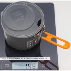 | Gewicht ca. | Standfuß: 30 g, Kocher: 62 g, Topf: 145 g |