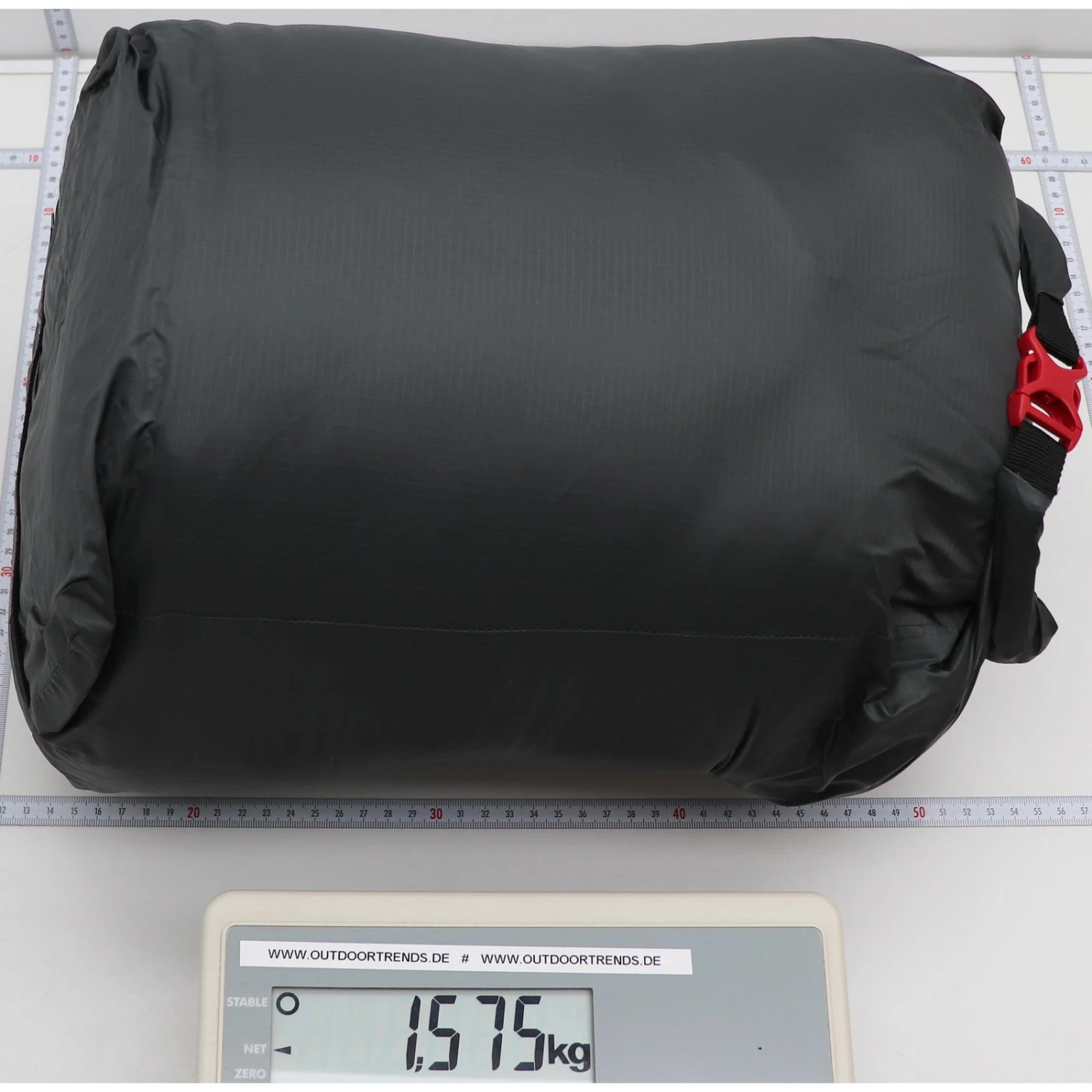 | Merkmale | 165 cm langer Reißverschluss mit Gemini-Kammer über die gesamte Länge, anatomisch geschnittenes Fußteil mit 2 Kammern, Aufbewahrungsbeutel mit Reißverschluss, aufwändig geschnittene Kapuze mit fünf separaten Kammern schützt den Kopf vor der Kälte, der Mountain Fit ist großzügig geschnitten und bietet eine optimierte Wärmeleistung, inklusive Packsack mit Rollverschluss, integrierter Wärmekragen mit Lode Lock Verschluss, schräge Daunenkammern sorgen für Komfort, geringes Gewicht und gute Wärmeleistung |