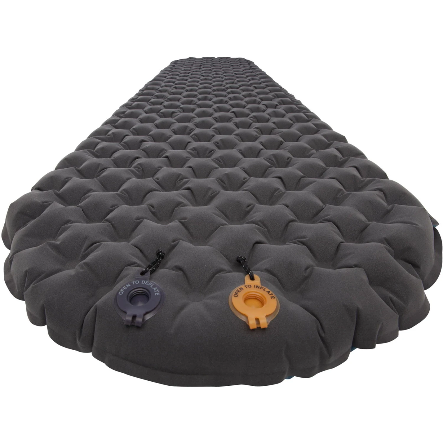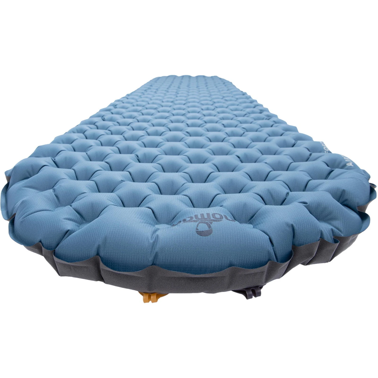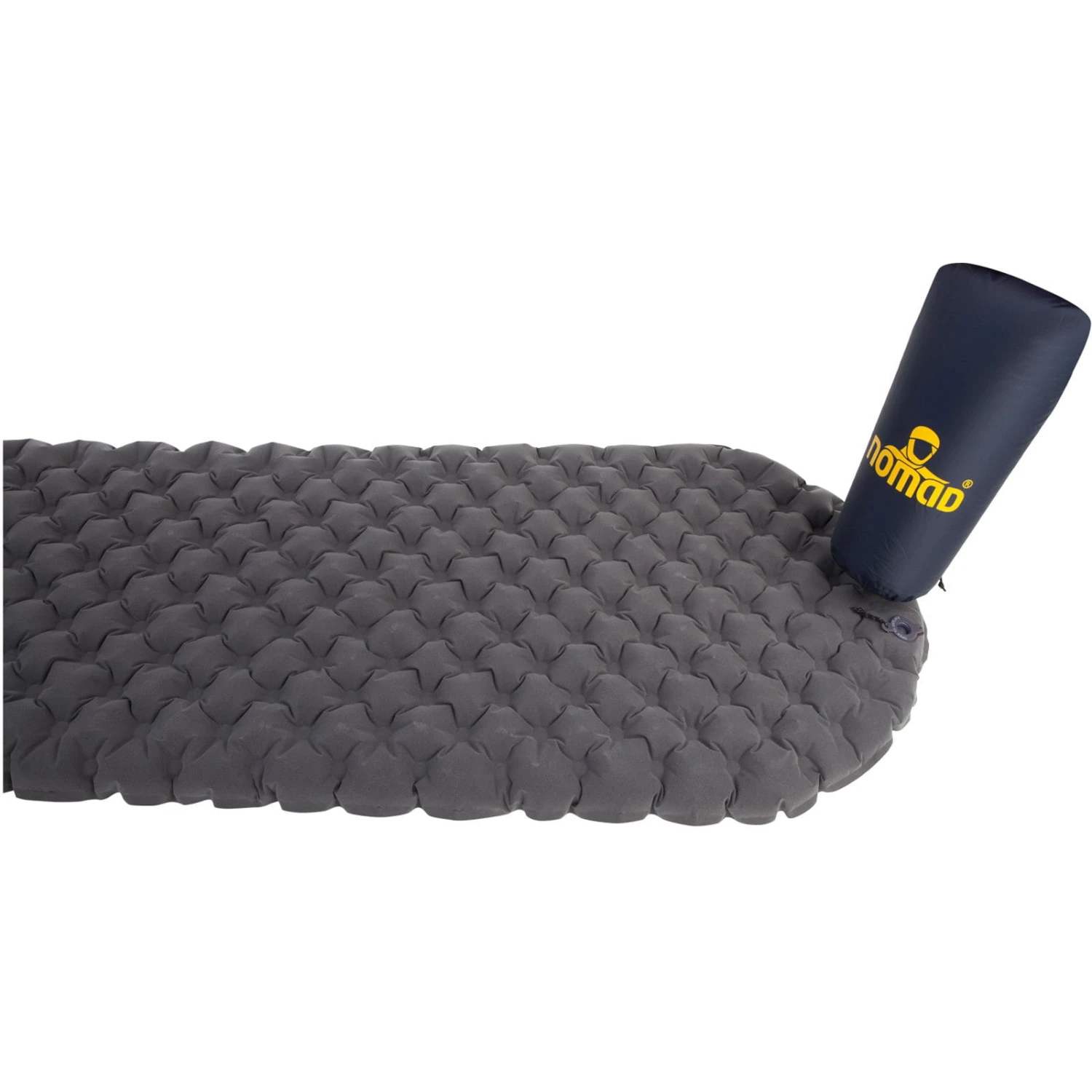Die Schlafmatte AirTec Comfort von Nomad ist eine isolierende Luftmatratze mit extrem niedrigem Gewicht und kleinem Packvolumen. Das Design dieser Ausführung verhindert kalte Stellen und bietet in Verbindung mit dem einzigartigen Heatlock-System eine bessere Isolierung als die reguläre AirTec-Matte. Die Unterseite der PFC-freien Matte besteht aus extrastarkem Material mit Antirutsch-Funktion. Die beiden Ventile sind mit Einwegfunktion versehen. Zum Lieferumfang gehört ein Packsack, ein Reparaturset und ein Pumpsack.