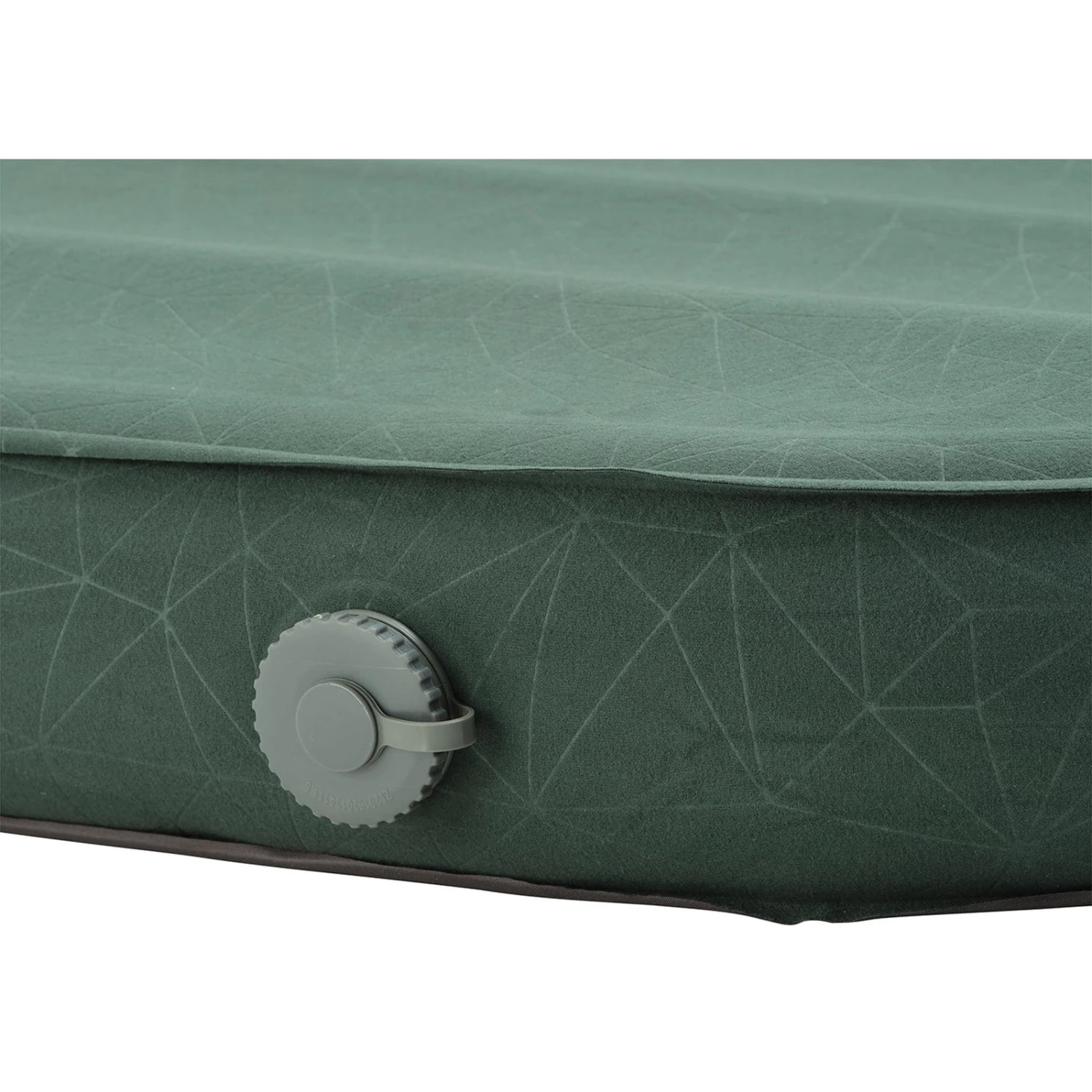 Die Dreamzone Premium Duo Compact 10.0 von Nomad ist die ideale Isomatte für alle, die sich unterwegs im Zelt oder Wohnmobil, aber auch bei Übernachtungen im Haus ultimativen Komfort wünschen. Diese Compact-Variante der Dreamzone Duo-Reihe von Nomad ist etwas leichter und kompakter als die regulären Dreamzone Duo-Modelle. Die Schlafmatte in Boxform hat komplett gerade Seitenwände, so dass die gesamte Liegefläche optimal genutzt werden kann und keine Bettritze entsteht, wenn eine zweite Matte daneben gelegt wird. Die Oberseite besteht aus weichem, dehnbarem Polyester, das sich der Körperform anpasst und so alle Bereiche unterstützt. Die Unterseite der Matte ist mit einem Antirutsch-Aufdruck versehen, damit die Matte auch auf leicht abschüssigem Untergrund nicht verrutscht. Für noch mehr Komfort sorgt bei der Dreamzone Premium Duo Compact 10.0 der 10 cm dicke weiche Schaumstoff im Inneren, der eine hohe Dichte hat und bietet somit eine gute Isolierung bietet. Der Schaumstoff ist jedoch nicht fest, sondern horizontal perforiert. Das bedeutet, dass der Schaumstoff sogenannte horizontale Luftkanäle enthält, was eine enorme Einsparung an Packvolumen und Gewicht bedeutet. Die Matte ist nicht nur mit einem, sondern mit zwei Ventilen ausgestattet, um das Aufblasen und Entleeren zu erleichtern. Wenn z.B. beide Ventile geöffnet sind, kann die Luft schnell entweichen und wenn nur etwas Luft ergänzt oder abgelassen werden soll, genügt ein Ventil. Die mitgelieferte Aufbewahrungstasche dient nicht nur zur Aufbewahrung, sondern kann auch als Pumpsack verwendet werden, um die Matte noch schneller und hygienischer aufzublasen. Im Lieferumfang enthalten ist auch ein Reparaturset, mit dem die Lebensdauer der Matte verlängert werden kann.