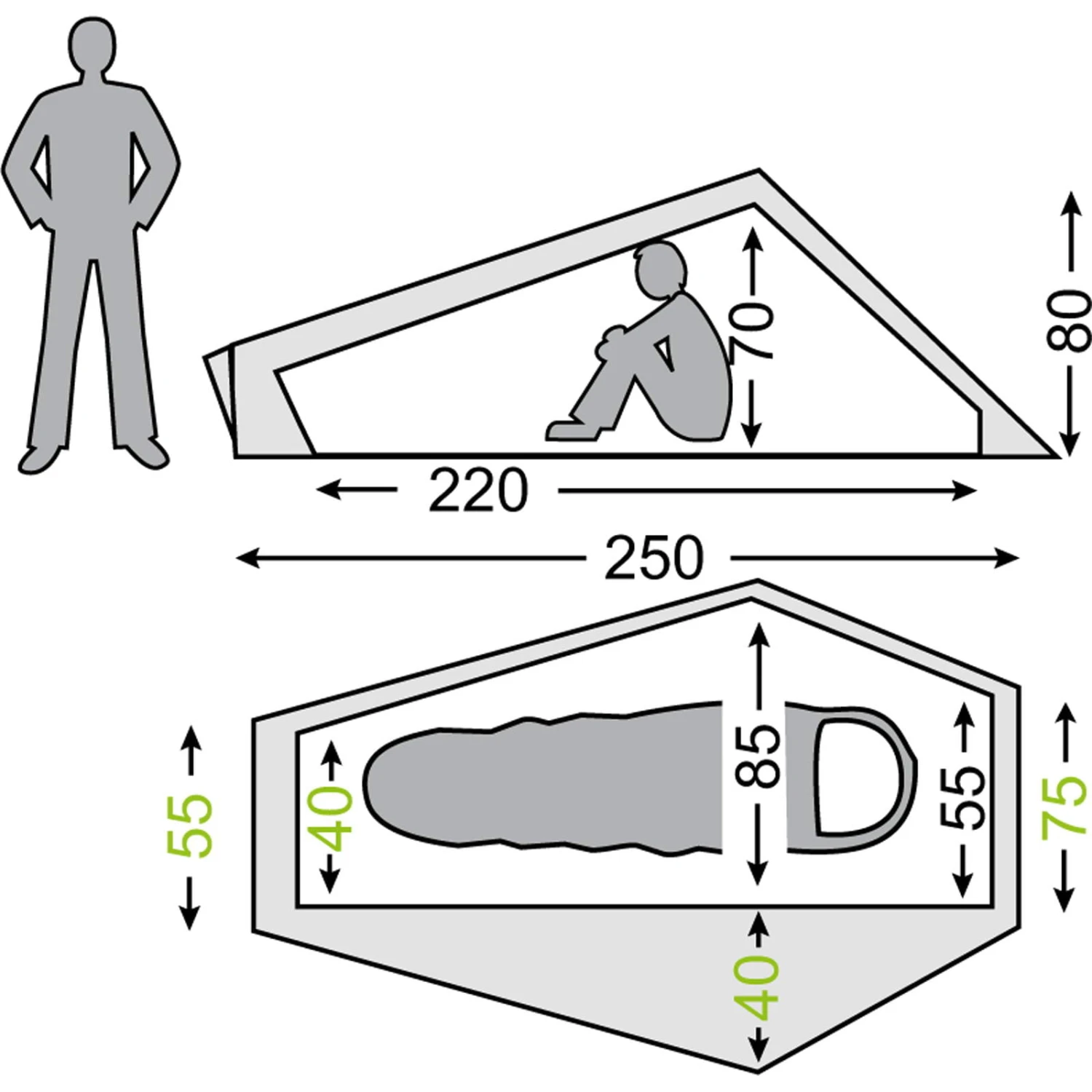 | Material Außenzelt | 100% Nylon (26 g/m2 – 580 TC, Ripstop, beidseitig silikonisiert) |