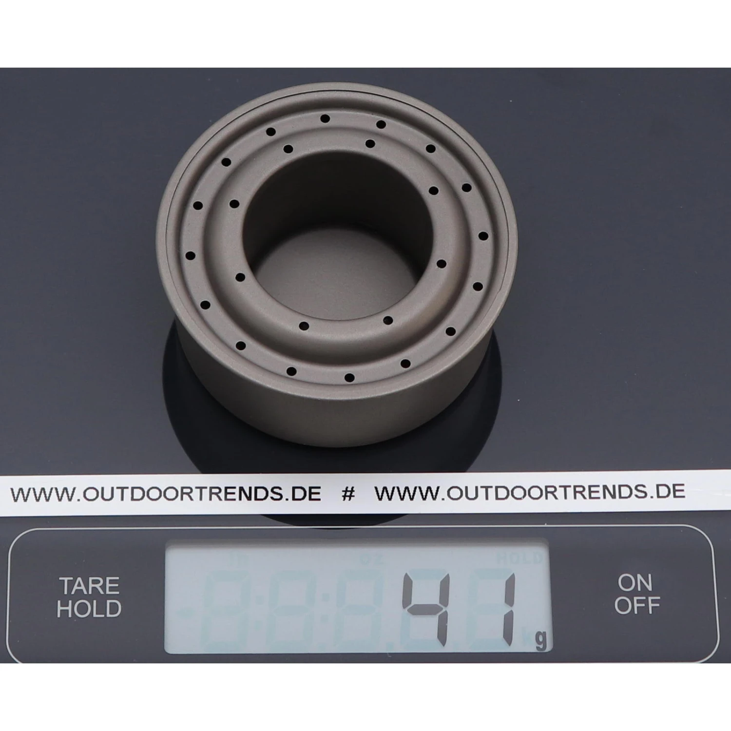 Der sehr leichte Titan Combo Kocher von Origin Outdoors kann mit Spiritus, Brennpaste und mit festen Brennstoffen, wie Trockenbrennstoff oder Holz verwendet werden. Mit Entnahme des Spirituseinsatz, kann der Kocher zum Beispiel mit Holz befüllt werden. Mit dem Spitituseinsatz kann der Kocher mit Spiritus oder einer Brennpaste verwendet werden und mit Deckel kann man den Spirituskocher im Handumdrehen in einem Trockenbrennstoffkocher umfunktionieren. Bei Bedarf kann der Griff des Deckels auch entfernt werden. Mit dem Origin Outdoors Titan Camping Topf (Artikel RL.562105, nicht im Lieferumfang) kann der Kocher ideal kombiniert werden. Der robuste und kompakte Kocher ist vielseitig verwendbar und ideal für echte Outdoorler.