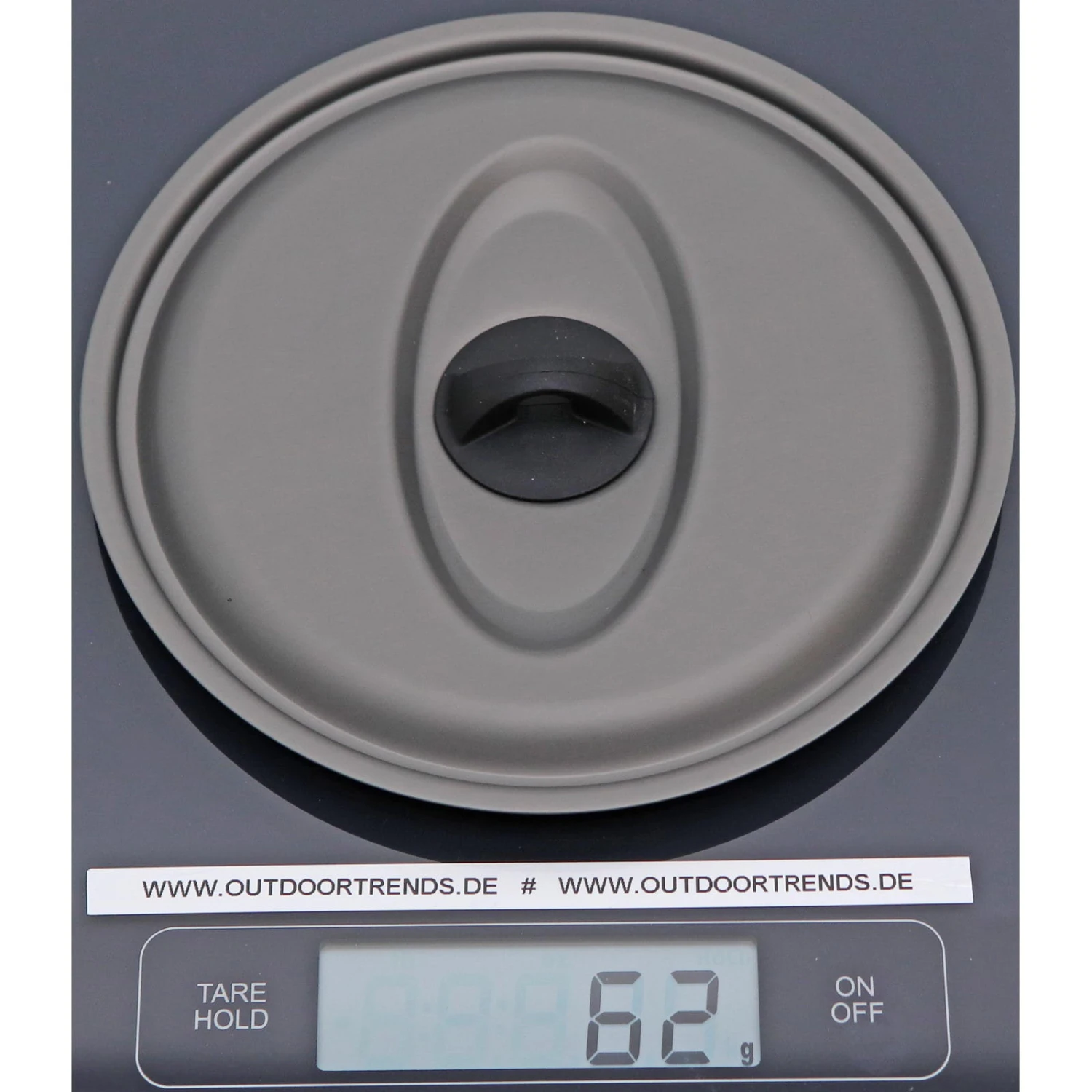 | Gewicht ca. | Packnetz: 27 g, Deckel 1: 62 g, Deckel 2: 68 g, Topf 1: 208 g, Pfanne: 223 g, Topf 2: 279 g, zusammen: 811 g |