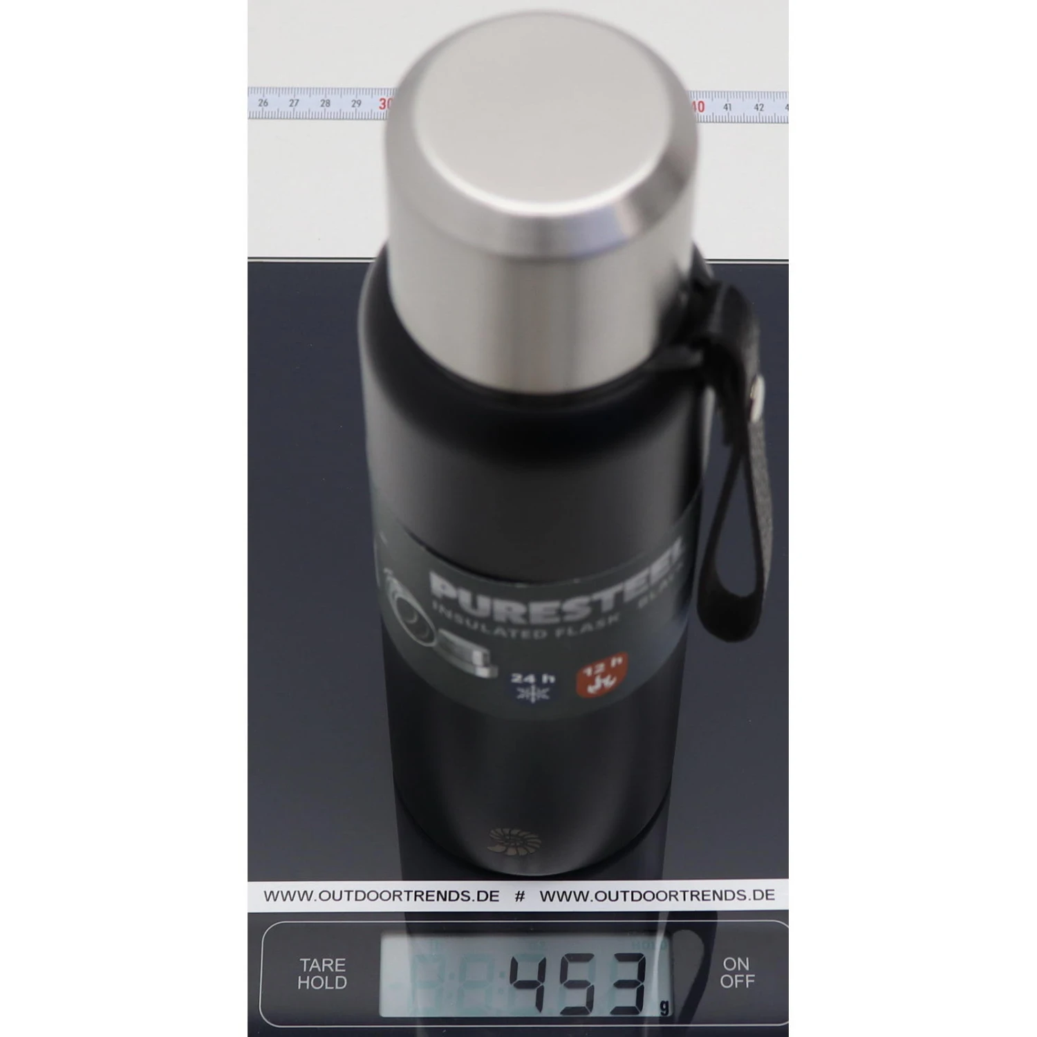 Plastikfreier Trinkgenuss. Das Getränk kommt mit keinen Plastikstoffen mehr in Berührung. Die Isolierflasche PureSteel 750 ml von Origin Outdoors besticht durch elegantes Design, Trageschlaufe, rutschfester Silikonboden und Edelstahl-Trinkverschluss. Doppelwandige Isolierflasche aus robustem Edelstahl. Der Deckel kann auch als Trinkbecher für unterwegs benutzt werden. Hält heiße Getränke lange warm und kalte Getränke auch an warmen Tagen länger kühl. Ideal für unterwegs, Büro und Freizeit. Hält Getränk 12 Std. warm und 24 Std. kalt.