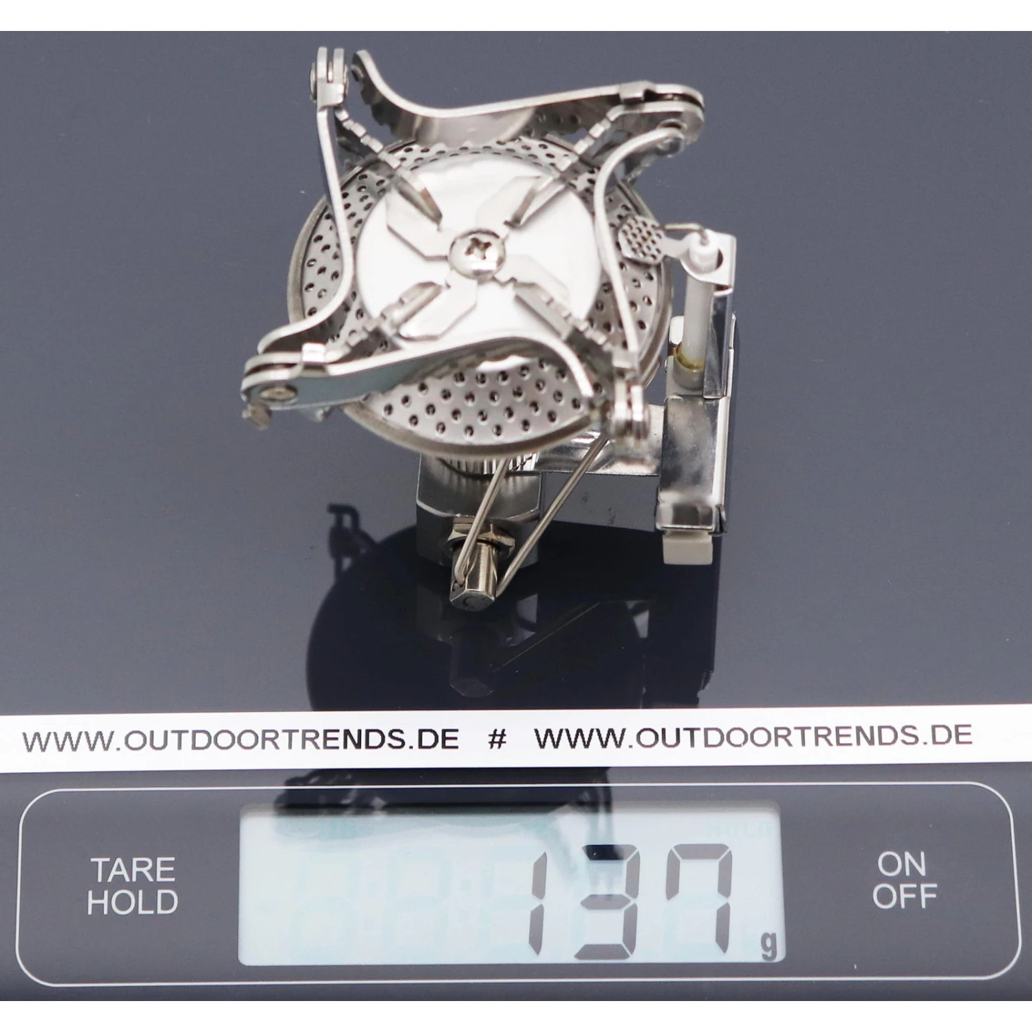 Der Quattro-Lite von Origin Outdoors ist ein leichter, kompakter Gaskocher mit klappbaren Topfträgern. Mit einer Brennerleistung von 3.500 Watt und der stabilen Konstruktion können Mahlzeiten schnell und zuverlässig zubereitet werden. Der Kocher aus Edelstahl ist für Schraubgasventil-Kartuschen verwendbar und daher sofort einsatzbereit. Der Kocher hat einen Piezo-Zünder, wodurch er sich einfach zünden lässt und wird mit einem praktischen Packsack geliefert. Der Quattro-Lite ist perfekt für Rucksacktouren, Campingausflüge und Outdoor-Abenteuer, bei denen das zu tragende Gewicht und Packmaß eine Rolle spielt.