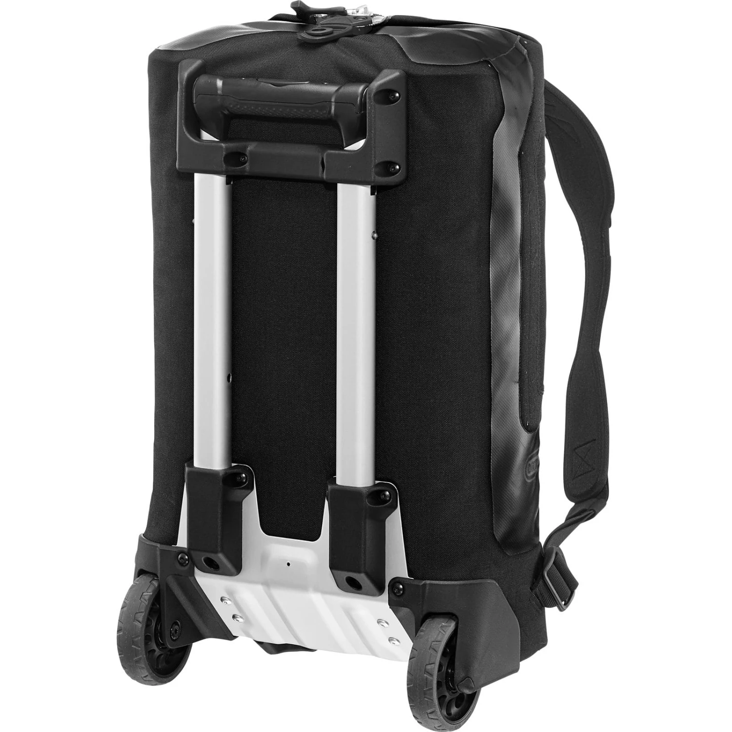 Der Duffle RG 34 wurde entwickelt für Aktiv-Urlaub und Fernreisen. Im Gegensatz zur Duffle RS, die für den Heavy-Duty Einsatz konzipiert wurde, ist die Duffle RG für das Plus an Komfort mit einem Teleskopsystem aus Aluminium ausgestattet. Mit 10 cm großen Rollen, einem stabilen Aluminiumrahmen und einer schlagfesten Unterseite, überzeugt die wasserdichte Reisetasche dennoch durch exzellentes Offroad-Handling und hohe Robustheit. Freistehend in leerem und in vollem Zustand, kann die Duffle RG 34 entweder mit dem Teleskopsystem gezogen, mit einer Hand getragen oder als Rucksack benutzt werden. Praktisch: Mit den Außenmaßen 55 x 35 x 23 eignet sich die 34 Liter Version als Handgepäck auf Flugreisen für die meisten Airlines. Wie alle ORTLIEB Duffles, ist die Duffle RG 34 mit einem wasserdichten, robusten 10 mm TIZIP Masterseal Reißverschluss ausgestattet. Ein integrierter Drahtbügel bietet die Möglichkeit die Tasche mit einem Schloss zu sichern. Weitere Features: Volumenangabe auf der Taschenseite, 1 Netzaussentasche, 1 Innentasche mit Reißverschluss, Kompressionsgurte innen zur Volumenanpassung.