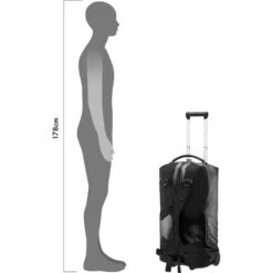 Merkmale: Wasserdichte, leichte Heavy-Duty Expeditions- und Reisetasche mit Rollsystem und Teleskopgestänge; Ideal für Trekking, Reise, Expedition, Individualreisen; Extrem abrieb- und reißfestes Gewebe; Langer wasserdichter TIZIP-Reißverschluss ermöglicht große Öffnung für leichten Zugriff; Netzaussentasche mit Reißverschluss (nicht wasserdicht!); Volumenangabe in Litern auf Taschenseite; Höhenverstellbarer Teleskopgriff für komfortables Ziehen; Gepolsterte, abnehmbare Schulterträger (Rucksackfunktion); Kompressionsgurt innen zur Volumenanpassung, mit integriertem Wertsachenfach; 100 mm große Outdoor-Rollen mit Profil bieten hohe Bodenfreiheit bei unebenem Untergrund; Aluminiumplatte zwischen Rollen zum Schutz des Taschenbodens; Schaumpolsterung am Taschenboden für hohe Stabilität bei Vollbeladung; Tasche kann über Drahtbügel am Reißverschlussende mit einem kleinen Vorhängeschloss (nicht enthalten) abgesperrt werden; Lieferumfang: Tasche mit Schultergurten, Rollsystem und Teleskopgestänge; Hinweis: Die Duffle RG darf nicht gerollt oder gefaltet werden und sollte im „ausgestreckten“ Zustand aufbewahrt werden; Hinweis: Zur Erreichung des Schutzgrades IP67 (6=staubdicht, 7=geschützt gegen Eindringen von Wasser bei zeitweiligem Untertauchen; Tiefe: 1m/Produktunterkante; Dauer 30 Minuten) muss der Reißverschluss komplett geschlossen sein.
