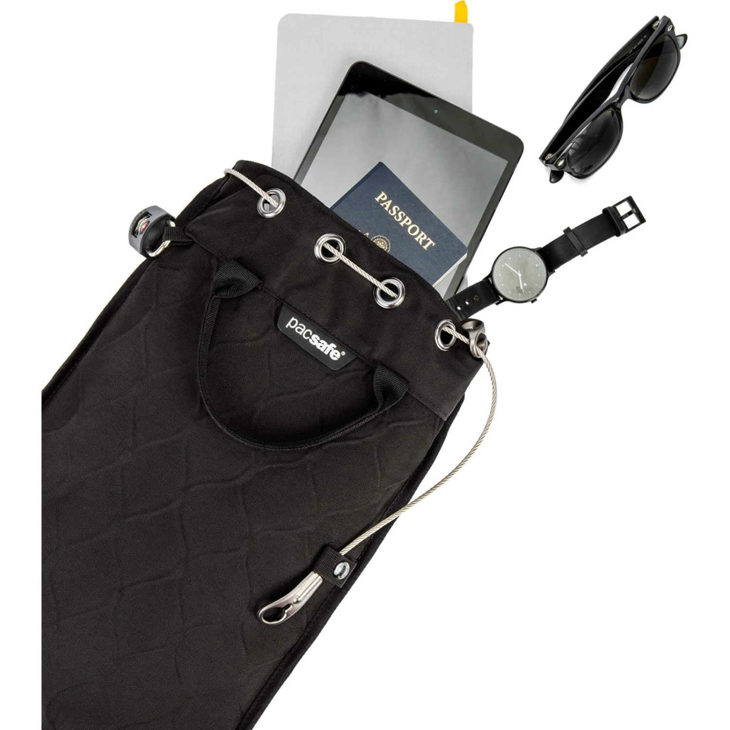 Der TravelSafe 5L GII ist ein felxibler und tragbarer Safe für Ihre Wertsachen und kann an einen Fixpunkt angebunden werden. Der TravelSafe 5L GII von pacsafe beinhaltet die laminierte eXomesh Technologie, kann mit dem intergrierten hochfesten Edelstahlkabel zugezogen und mit dem patentieretn Verschlusssystem versperrt werden. Das integrierte eXomesh erschwert Taschendieben den Zugriff auf den Inhalt.