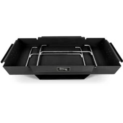 Der Brennbock ist deine flexible und transportable Feuerschale im Freien, mit der du die vielfältige Lagerfeuerküche überall entdecken kannst. Dank einem Füllvolumen von 50 l für Brennholz, Holzkohle oder Grillbriketts versammelst du ganz einfach eine große Truppe um dich, um Menüs überall dort zu kochen, wo dich dein Abenteuer hin verschlägt. In der Feuerschale aus Stahl werden die Flammen gebändigt, denn der hohe Rand schützt das Feuer und ermöglicht eine saubere Feuerstelle. Dank des Aufbockens durch zwei einfach zu installierende Standbügel kannst du dein Feuer mit genügend Abstand zum Boden entfachen. So hinterlässt du keine Spuren, wenn dein Draußen-Kochabenteuer mit der hitzebeständigen und unverwüstlichen Feuerschale beginnt. Die Kombination aus Frischluft und Erlebnis macht hungrig: Gönn dir etwas Deftiges, indem du die Feuerbrücke mit dem Brennbock kombinierst oder das Dreibein über der Stahl-Feuerschale errichtest, um auf dem Hängerost Steaks mit unverwechselbaren Grillstreifen zu grillen. Dabei kommt dir die Belastbarkeit des Brennbocks zugute, denn der Brennbock trägt bis zu 100 kg Kochausrüstung. Der Brennbock hilft dir beim gleichzeitigen Servieren mehrerer Gerichte, denn durch das zugehörige Backfach kannst du einen Kartoffelauflauf überbacken, saftige Steaks nachgaren lassen oder dein Bauernfrühstück warmhalten. Im Backfach finden die Feuerpfannen fp15 – fp30 bzw. die Grill-Feuerpfanne gp35-t und die Kastenformen k4 bis k8 (ohne Deckel) den perfekten Platz, bis die herzhaften Gerichte am Feuer verzehrt werden. Wenn du den Brennbock zum ersten Mal montierst, stattest du ihn mit dem Backfach aus und anschließend kannst du ihn im Auto oder Van überall dorthin transportieren, wo du dein Freiluftabenteuer beginnen möchtest. Die robusten Standbeine demontierst du einfach ohne Werkzeug, sodass du sie nach der Reinigung des Brennbocks von Ascherückständen platzsparend in der Wanne lagern kannst.