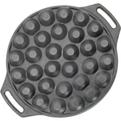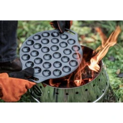 Für Abenteuergeschmack in mundgerechten Portionen: Die Poffertjespfanne verhilft zu einem außergewöhnlichen Dessert am Lagerfeuer und begeistert gerade den Nachwuchs in der Runde. Mit der Sonderform aus Gusseisen bäckt man 30 Stück der niederländischen Mini-Pfannkuchen gleichzeitig und in kürzester Zeit aus. Die ausgezeichnete Wärmeleitfähigkeit der Poffertjespfanne aus Gusseisen sorgt zusätzlich für ein gleichmäßiges Backergebnis. Ob mit offenem Feuer oder über der heißen Glut des Grills: Die Poffertjespfanne versüßt in allen Lagen den Einsatz. Dabei garantieren die beiden Henkel eine sichere Handhabung. Zusätzlich passt die Pfanne mit einem Durchmesser von 30 cm optimal in den Petromax Atago und liegt am oberen Rand auf. Auch zu Hause muss man nicht auf den unverwechselbaren Geschmack verzichten, denn die Unterseiten der 30 Backmulden sind abgeflacht. Dadurch steht die Poffertjespfanne auf dem Backblech stabil und kann sowohl im Ofen als auch auf allen gängigen Herdarten genutzt werden.