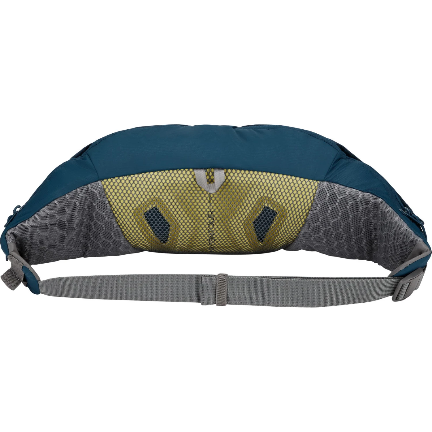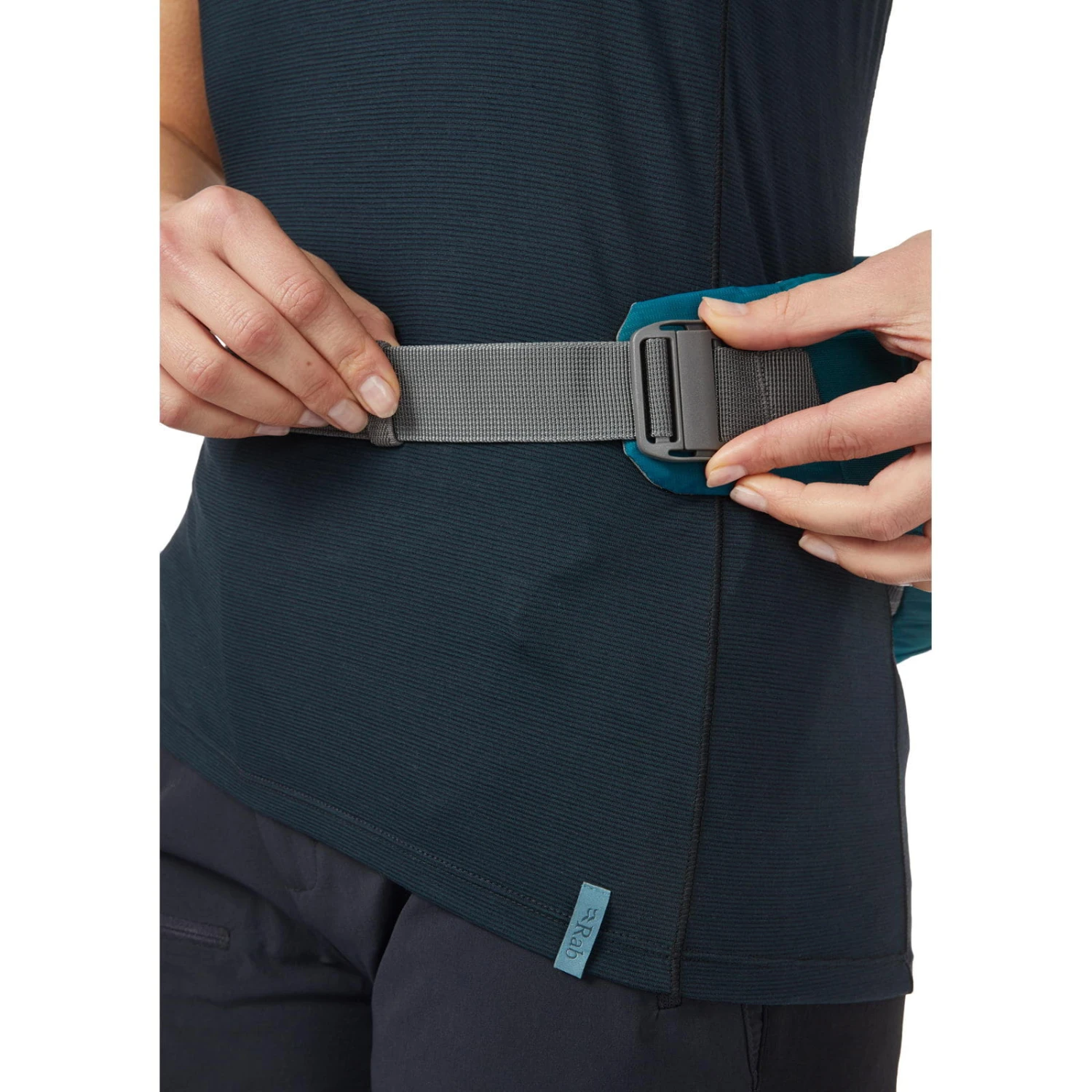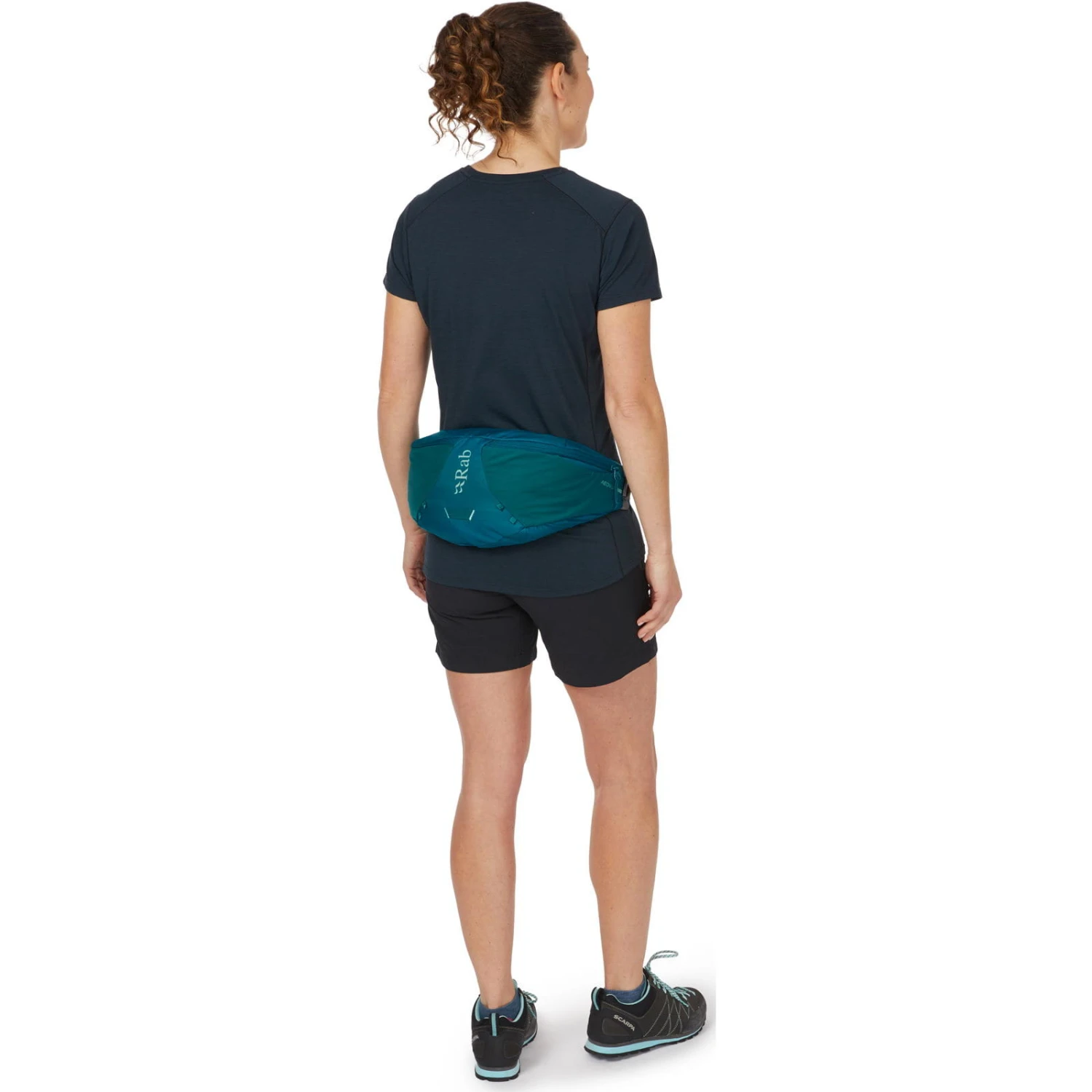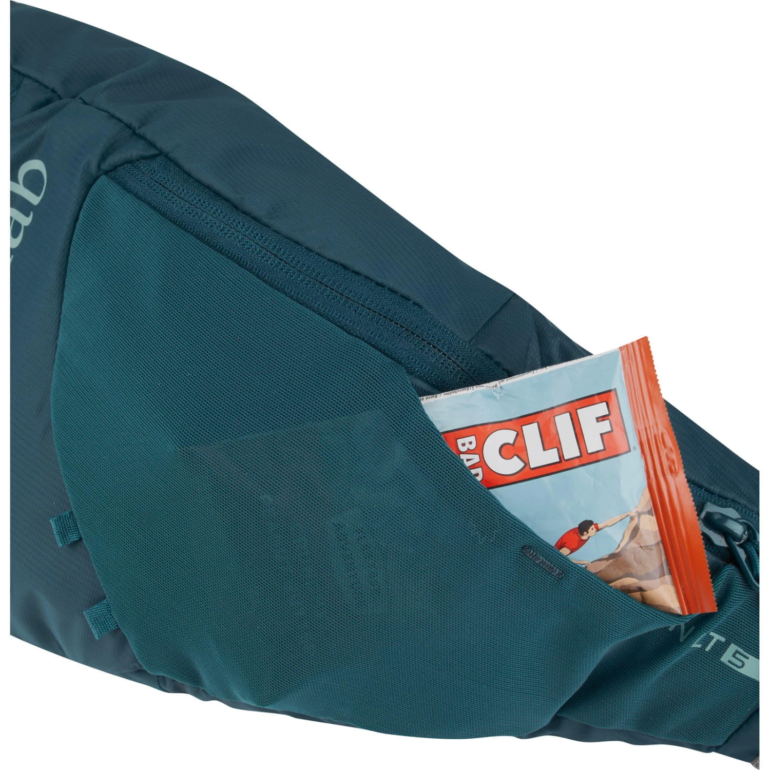 Die Aeon LT 5 von Rab ist eine sichere, stabile und äußerst atmungsaktive Hüfttasche, die sich ideal für den Transport der wichtigsten Ausrüstung mit maximaler Bewegungsfreiheit und Luftzirkulation eignet. Die Aeon LT 5 wurde für schnelle Wanderungen und Aufstiege entwickelt und ist ideal, um sich in schwierigem Gelände völlig frei bewegen zu können. Die schlanke Gürteltasche mit einem Fassungsvermögen von 5 Litern ist leicht und gewölbt, um einen sicheren und bequemen Sitz zu garantieren und das Abfedern zu minimieren. Das Air Contour™-Rückensystem sorgt für die nötige Luftzirkulation und ist mit atmungsaktivem, offenem Netzgewebe umhüllt, damit man auch bei anspruchsvollen Aufstiegen und schnellen Aktivitäten in den Bergen nicht ins Schwitzen kommt. Zwei Hauptfächer mit Reißverschluss und elastische Einschubfächer an der Außenseite sorgen für Ordnung und bieten Platz für Snacks und andere Utensilien, die immer griffbereit sein sollen. Eine Reißverschluss-Sicherheitstasche und eine Schlüsselhalterung im Inneren sorgen dafür, dass Schlüssel, Smartphone oder andere Wertsachen sicher verstaut sind. Zusätzlich befinden sich auf der Vorderseite eine Befestigungsmöglichkeit für ein Rücklicht und vier kleine Gurtschlaufen für zusätzliche Ausrüstung. Die Aeon LT 5 Hüfttasche ist mit einer fluorcarbonfreien DWR-Beschichtung versehen und lässt sich mit einem verstellbaren, gepolsterten Gürtelzug festziehen, damit sie eng und bequem anliegt und man sich bei schnellen Bergtouren vollkommen frei bewegen kann.