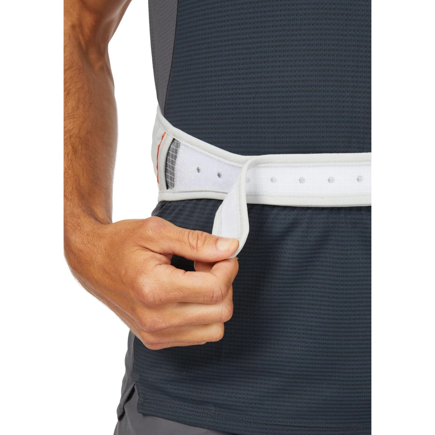 Die Veil 1 von Rab ist eine kompakte, ultraleichte und atmungsaktive Trailrunning-Gürteltasche, die sich perfekt für den Transport des Nötigsten bei rasanten Bergabenteuern eignet. Die Hüfttasche besteht aus Ripstop Mono Mesh, einem robusten, aber hoch atmungsaktiven Gewebe, das um 50% leichter ist und um 70% weniger Flüssigkeit aufnimmt als andere Spacer-Mesh-Gewebe. Die Ripstop-Konstruktion und die durchdachten Einsätze sorgen genau an den richtigen Stellen für Stretch und Stärke. In den Hüftgurt sind lasergeschnittene Löcher zur Luftzirkulation eingelassen und er kann mit dem verstellbaren Klettverschluss festgezogen werden. Nicht benötigte Hüftgurtlänge kann hinter der elastischen Seitentasche verstaut werden. So sitzt die Tasche auch auf anspruchsvollen und langen Strecken sicher. Das Hauptfach mit Reißverschluss-Sicherheitstasche bietet Platz für Schlüssel, Smartphone oder andere Wertsachen. In den beiden seitlichen Meshtaschen können Kompass oder Powerriegel verstaut werden. Zusätzlich befinden sich auf der Vorderseite ein seitlich zugängliches Einschubfach und vier kleine Gurtschlaufen für zusätzliche Ausrüstung. Die Veil 1 Gürteltasche ist mit einer fluorcarbonfreien DWR-Beschichtung imprägniert und bietet minimalistische Aufbewahrungsmöglichkeiten, die man gar nicht bemerken wird.