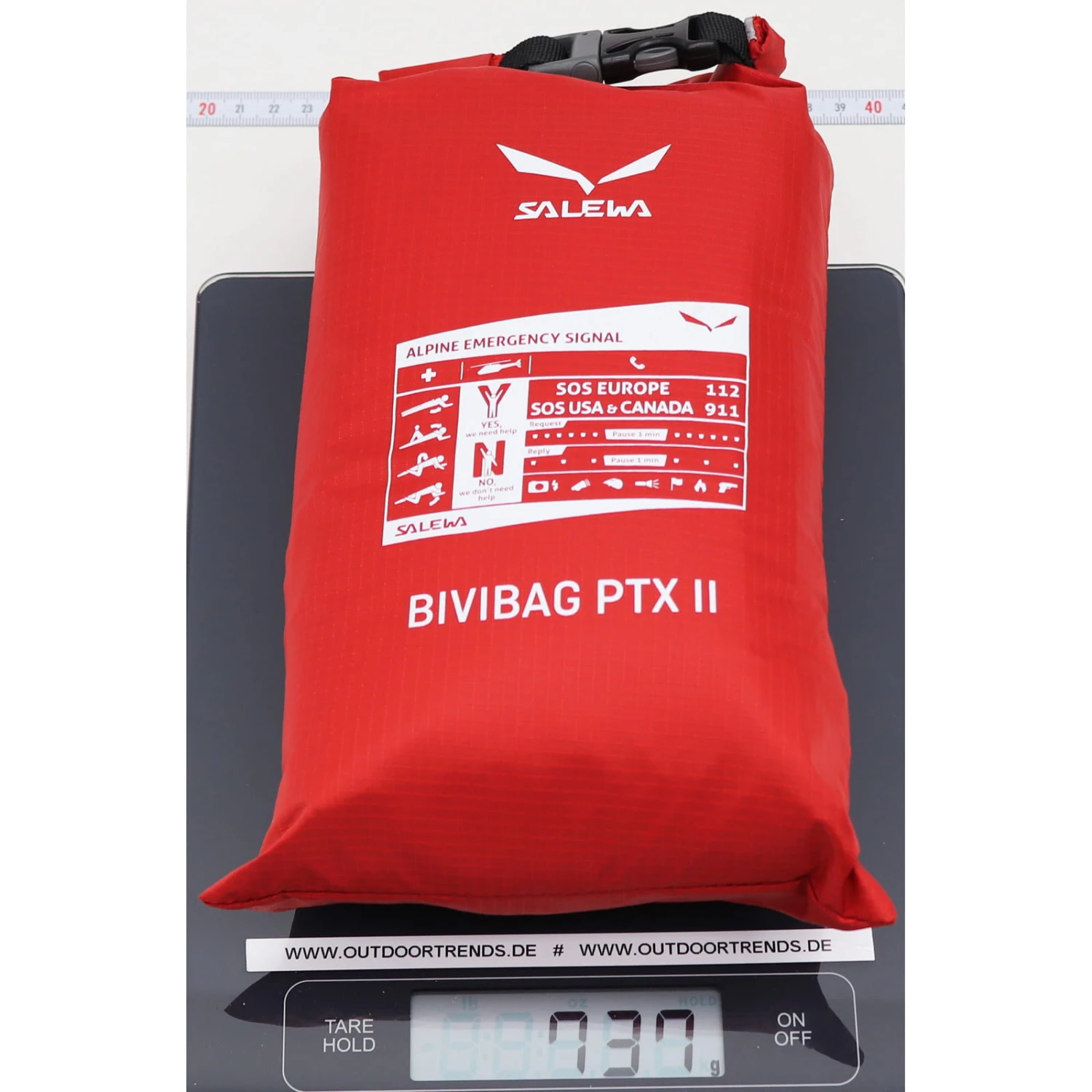 Der PTX Bivibag II von Salewa ist ein wasserabweisender Biwaksack für zwei Personen, dessen atmungsaktives Obermaterial aus Powertex die Kondenswasserbildung reduziert. Der PTX Bivibag II ist ideal für das Höhenbergsteigen im Alpinstil oder in Notsituationen. Der Biwaksack ist mit einer Signalpfeife für Notsituationen ausgestattet. Die Kapuze kann mit Schnüren an Felsen oder Ästen befestigt und gespannt werden.