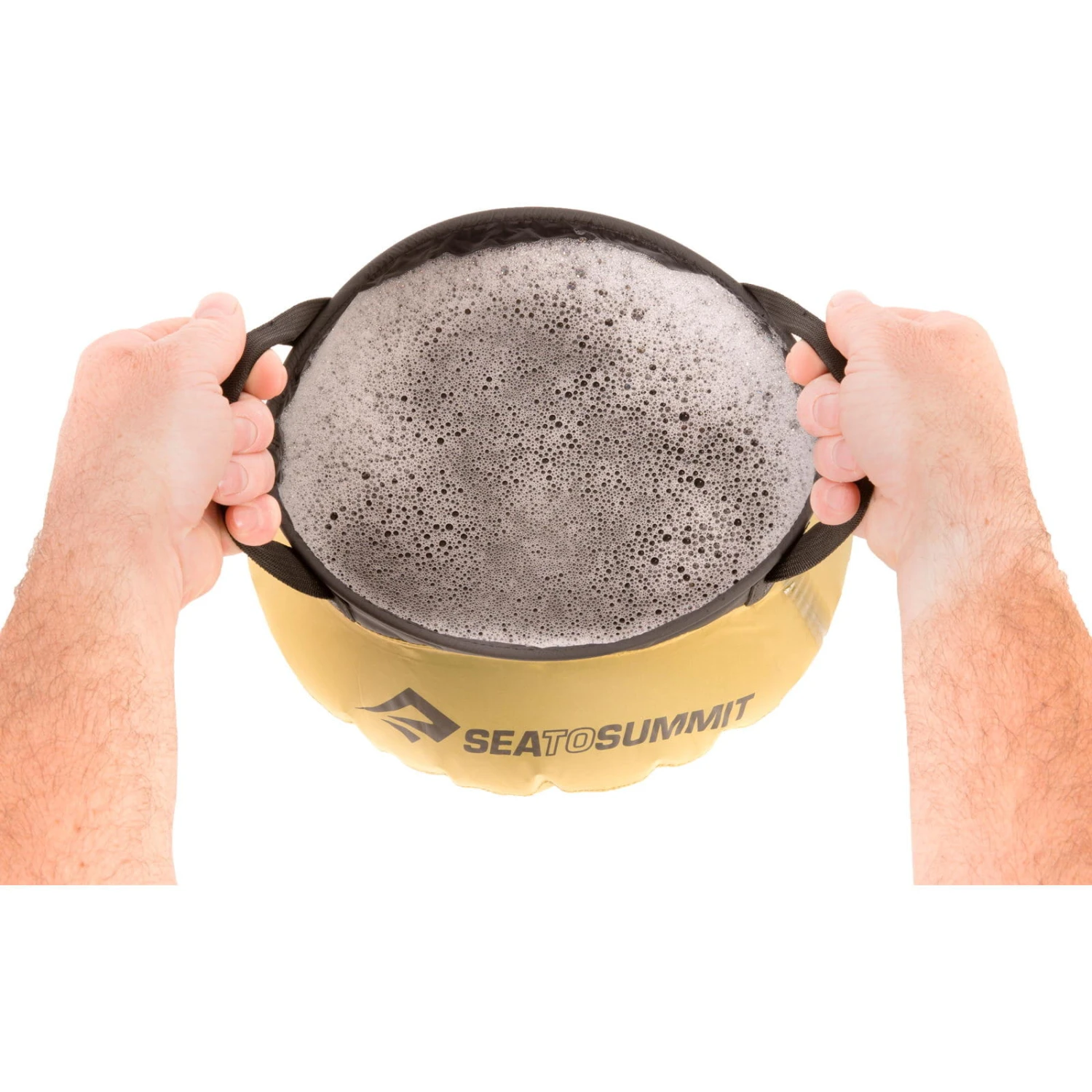 Faltbare Schüssel Kitchen Sink mit 20 Liter Fassungsvermögen von Sea to Summit. Extrem leicht aber dennoch im gefüllten Zustand freistehend.