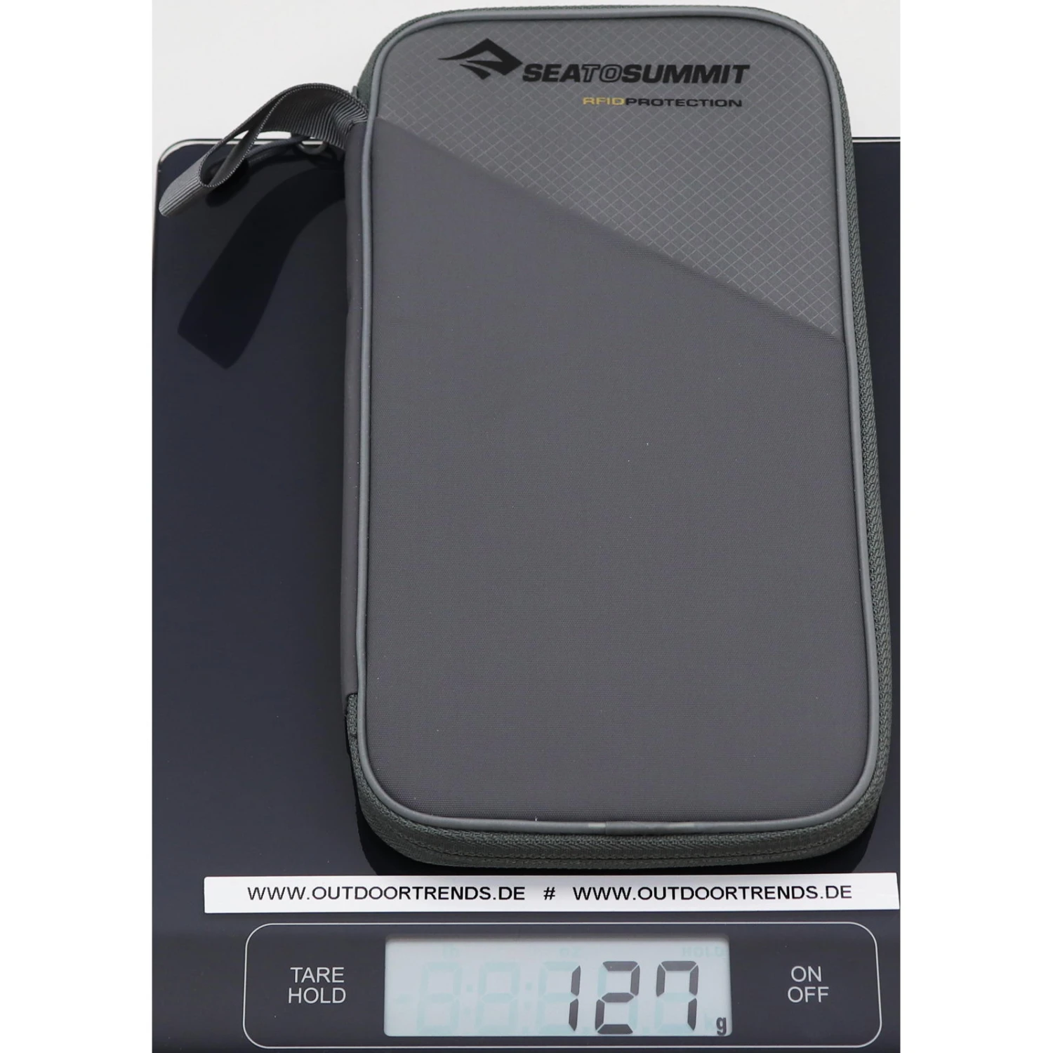 Das Ultra-Sil Travel Wallet RFID von Sea to Summit in der Größe Large ist ein leichtes und stabiles Portemonnaie, es bietet eine bequeme Möglichkeit die Wertgegenstände sicher zusammen zu halten und sie vor rauen Bedingungen zu schützen. Die Geldbörse ist mit RFID-sicherem Material ausgestattet um vor digitalem Diebstahl zu schützen. Die Größe L bietet aussen ein Einschubfach und innen neun Kartenfächer, zwei große Einschubfächer für Geldscheine oder Dokumente, ein kleines Münzfach, einen Stifthalter und ein Reißverschlussfach für den Reisepass.
