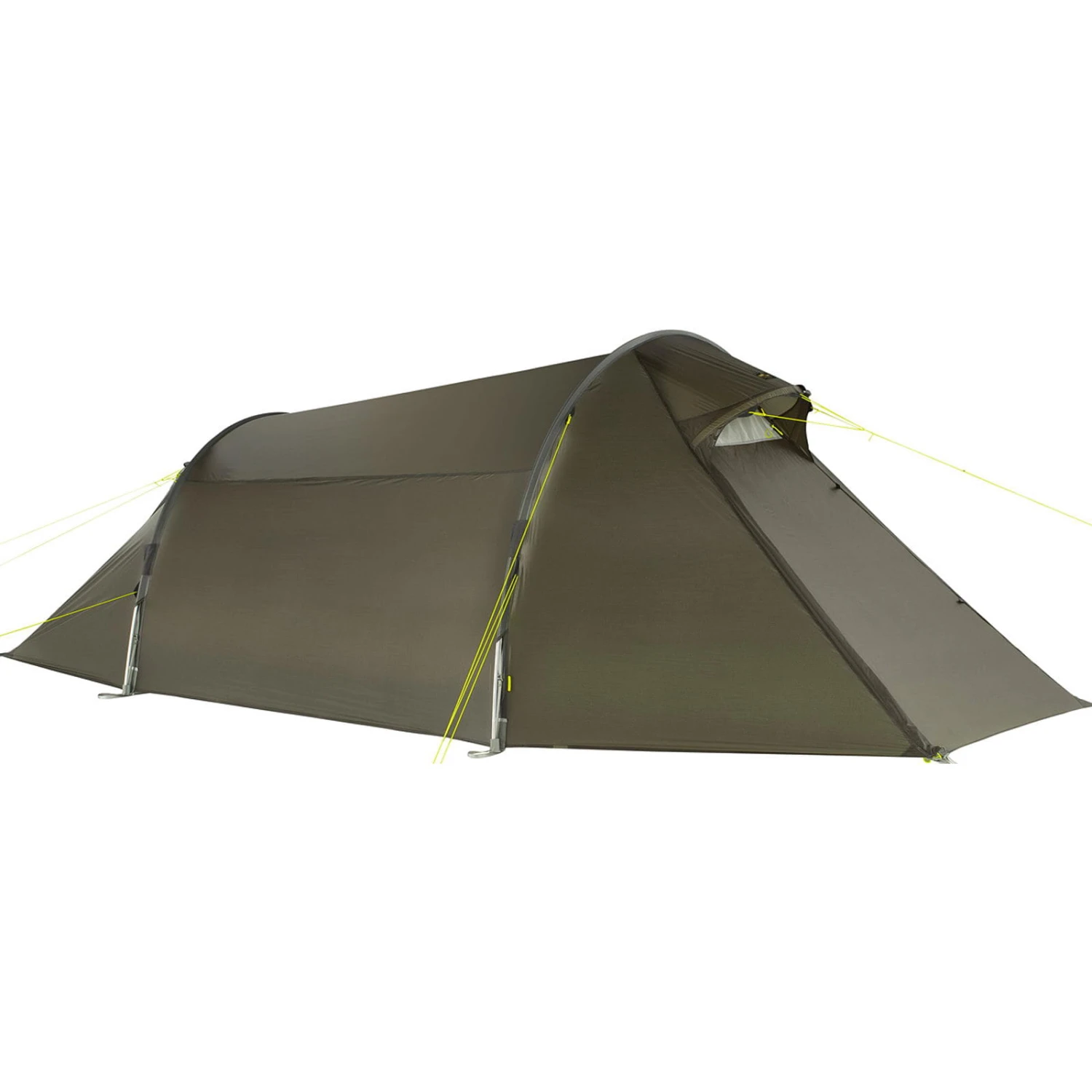 Das 2-Personen-Zelt Gargia 2 von Tatonka bietet im Verhältnis zum Gewicht ein außergewöhnlich gutes Platzangebot: Mit einer Liegelänge von 2,35 m finden auch großgewachsene Menschen bequem Platz. Das extraleichte, silikoniserte Außenzeltmaterial (5-fach silikonbeschichtetes Ripstop-Nylon 6.6 mit der Faserstärke 20 Denier) und leichte Nylon-Materialien für Boden und Innenzelt sorgen für eine perfekte Balance von niedrigem Gesamtgewicht und großer Robustheit für einen breiten Einsatzbereich. Das Zeltbodenmaterial ist PU-beschichtet und schützt mit einer Wassersäule von 10.000 mm optimal vor Nässe von unten. Das 2-Personen-Zelt besitzt einen Frontzugang mit einer Apsis für das Gepäck. Ein zusätzlicher Reißverschluss-Zugang auf der gegenüberliegenden Schmalseite und Lüfter sorgen für optimale Belüftungs- und Trocknungsmöglichkeiten. Innen- und Außenzelt sind gekoppelt und können gemeinsam aufgestellt werden. Bei Regen kann das Innenzelt beim Abbau aber auch ausgehängt und trocken verstaut werden. Beim nächsten Aufbau wird dann zuerst das Außenzelt errichtet und anschließend das trockene Innenzelt eingehängt.