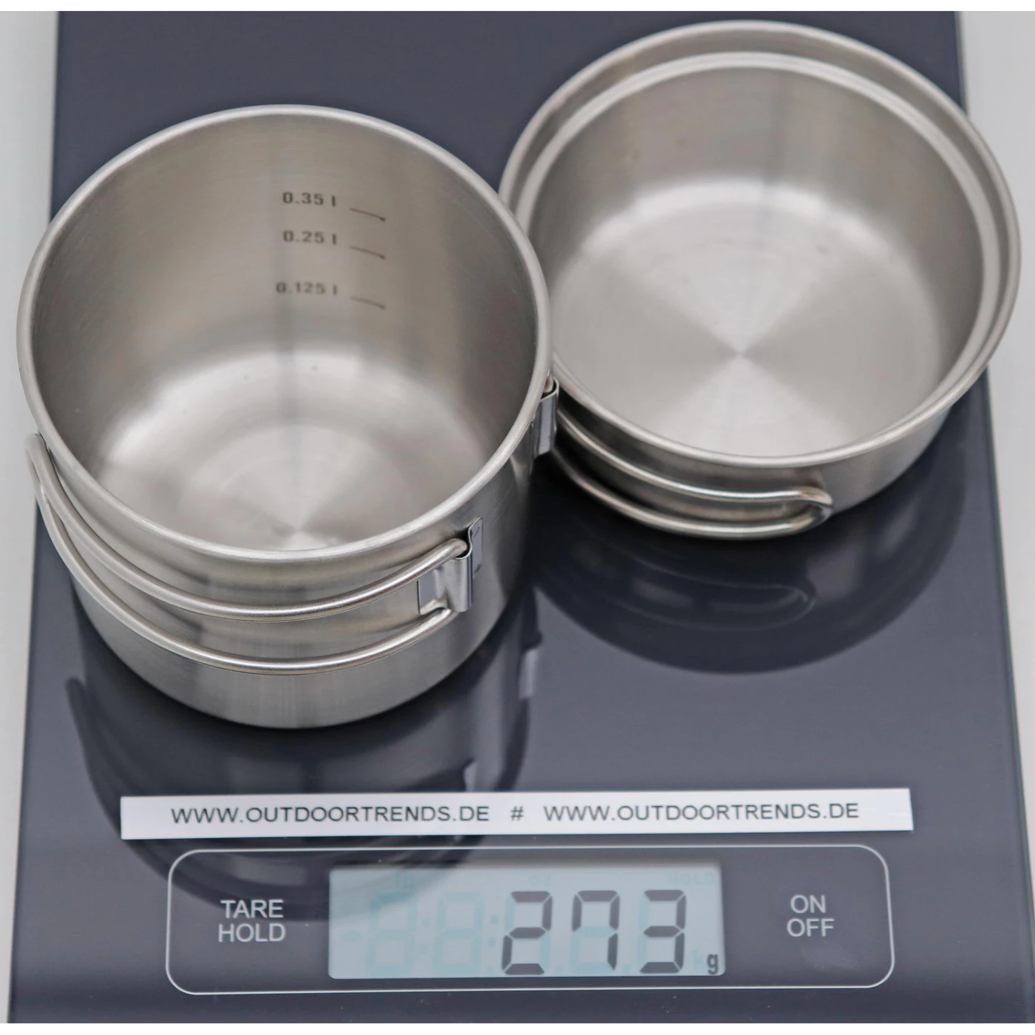 Das Handle Mug 500 Set von Tatonka besteht aus dem bekannten und bliebten Handle Mug 500 (mit Maßskala innen) sowie dem Handle Mug Lid. Wie gewohnt passt in beides eine Liter Weithalsflasche von Nalgene und zusammen genommen hat man 750 ml Volumen. Neben der Möglichkeit diese Kombinatin als Tasse, Becher oder Schüssel zu nutzen eignen sie sich auch um damit Speisen zu erwärmen. Gefertigt aus reinem Edelstahl ist das Tatonka Handle Mug 500 Set geschmackneutral, extra langlebig und hat die beliebten Klappgriffe.