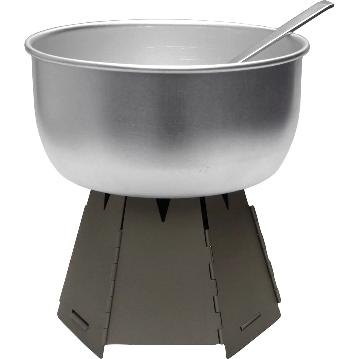 Der ultimative Mini Outdoor-Ofen. Kommt extrem flach gefaltet mit unschlagbarem Packmaß aus. Dann aber entfaltet er seine ganze ‚Größe‘: Die Bauteile sind schnell zusammengeklappt und halten auch große Hitze aus. Einheizen mit kleinen Holzstücken, Moos oder anderem Brennmaterial. Natürlich passt auch ein Spirituskocher (z.B. Vargo Decagon) oder ein Esbitkocher in den Hexagon. Dann fungiert dieser quasi als Windschutz. Einen Topf (otimal bis maximal 1,4 L) dann einfach oben auf den Ofen stellen. Durch die konische Form zieht der Ofen sehr gut und die Front-‚Tür‘ erlaubt ein gezieltes Nachlegen bzw. eine Regulierung der Luftzufuhr um die Brennleistung zu erhöhen.
